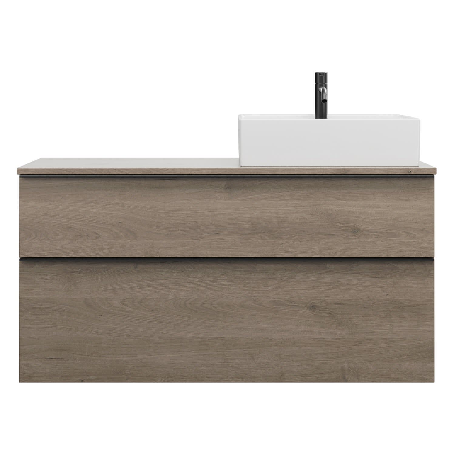 - 1 Schublade oben, 35 cm tief, mit Siphonausschnitt und Inneneinteilung