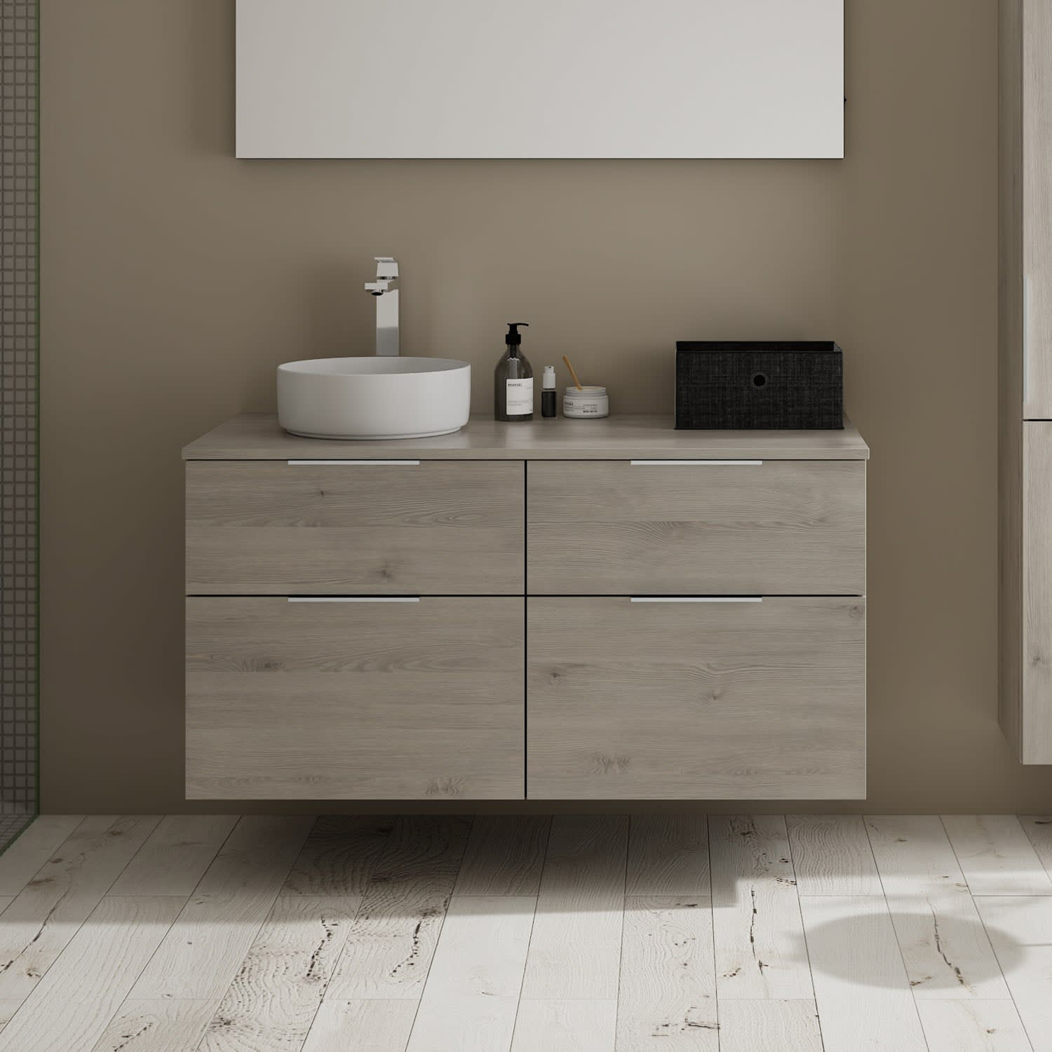 Aufsatzwaschtische müssen immer, mindestens 3 cm von den Außenkanten der Konsolenplatte entfernt sein.