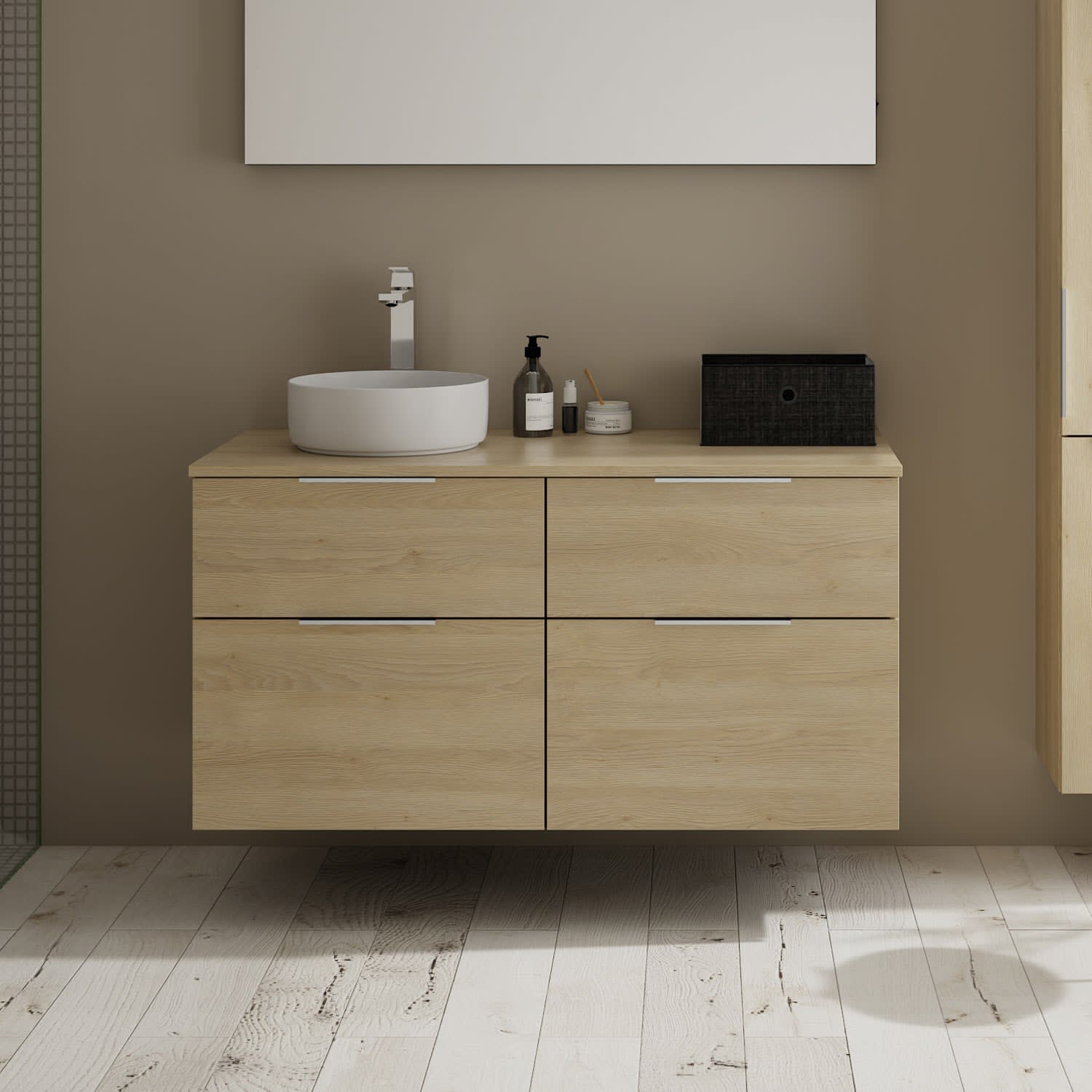 Aufsatzwaschtische müssen immer, mindestens 3 cm von den Außenkanten der Konsolenplatte entfernt sein.