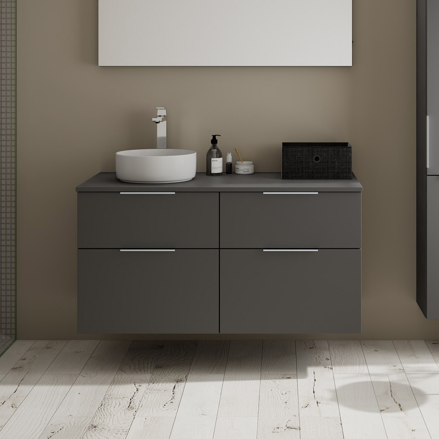 Aufsatzwaschtische müssen immer, mindestens 3 cm von den Außenkanten der Konsolenplatte entfernt sein.