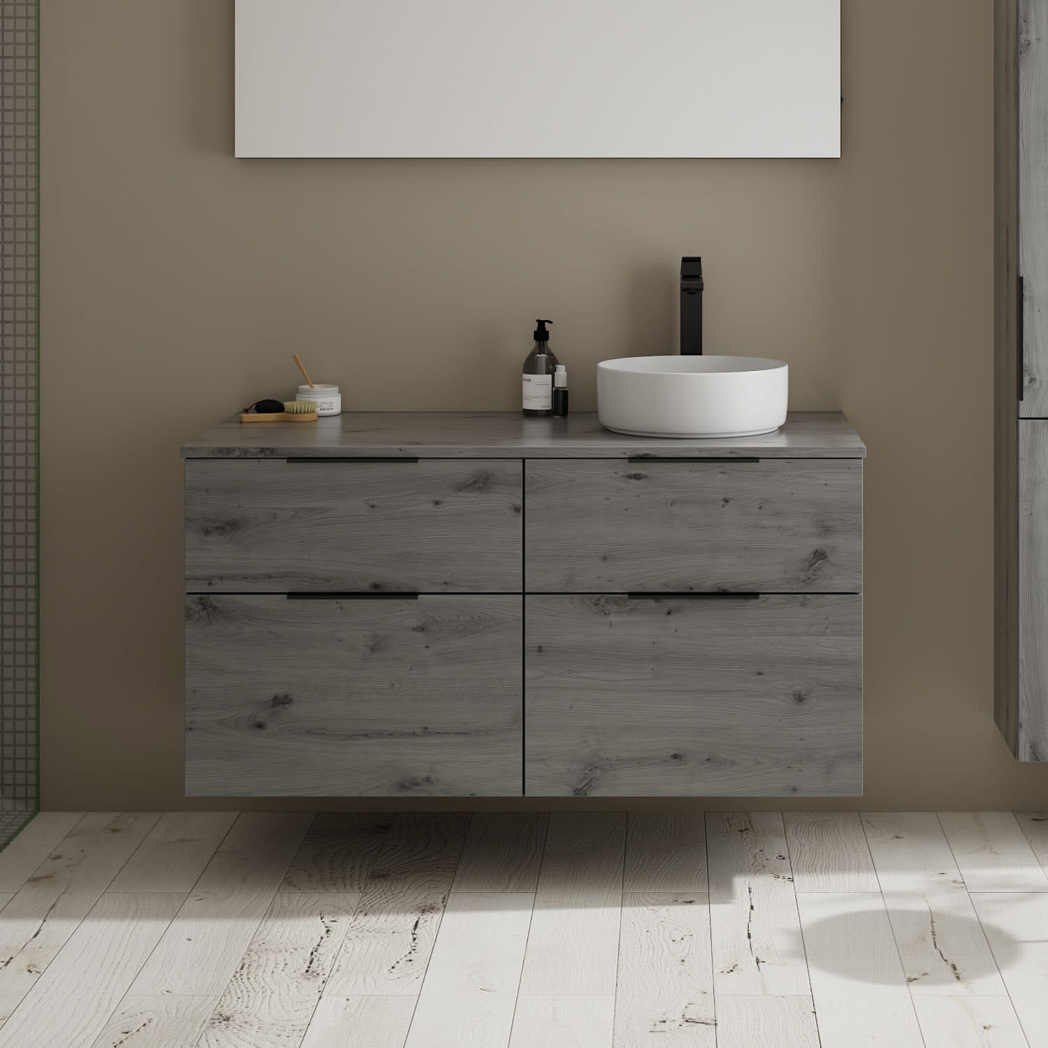 Aufsatzwaschtische müssen immer, mindestens 3 cm von den Außenkanten der Konsolenplatte entfernt sein.