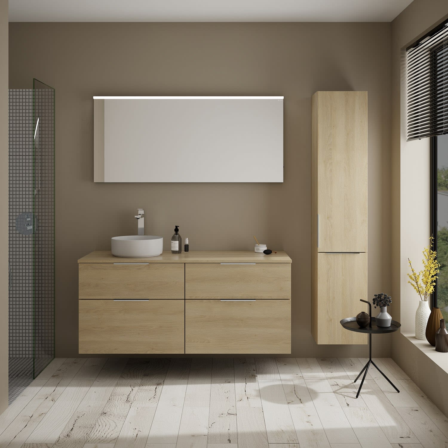 OLTENS Vernal Badmöbel-Set 3-teilig mit 2 Unterschränken mit Schubladen und Konsolenplatte 140 x 25,2/48,6 cm