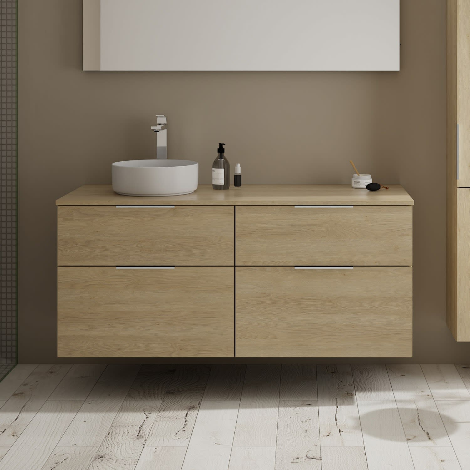 Aufsatzwaschtische müssen immer, mindestens 3 cm von den Außenkanten der Konsolenplatte entfernt sein.
