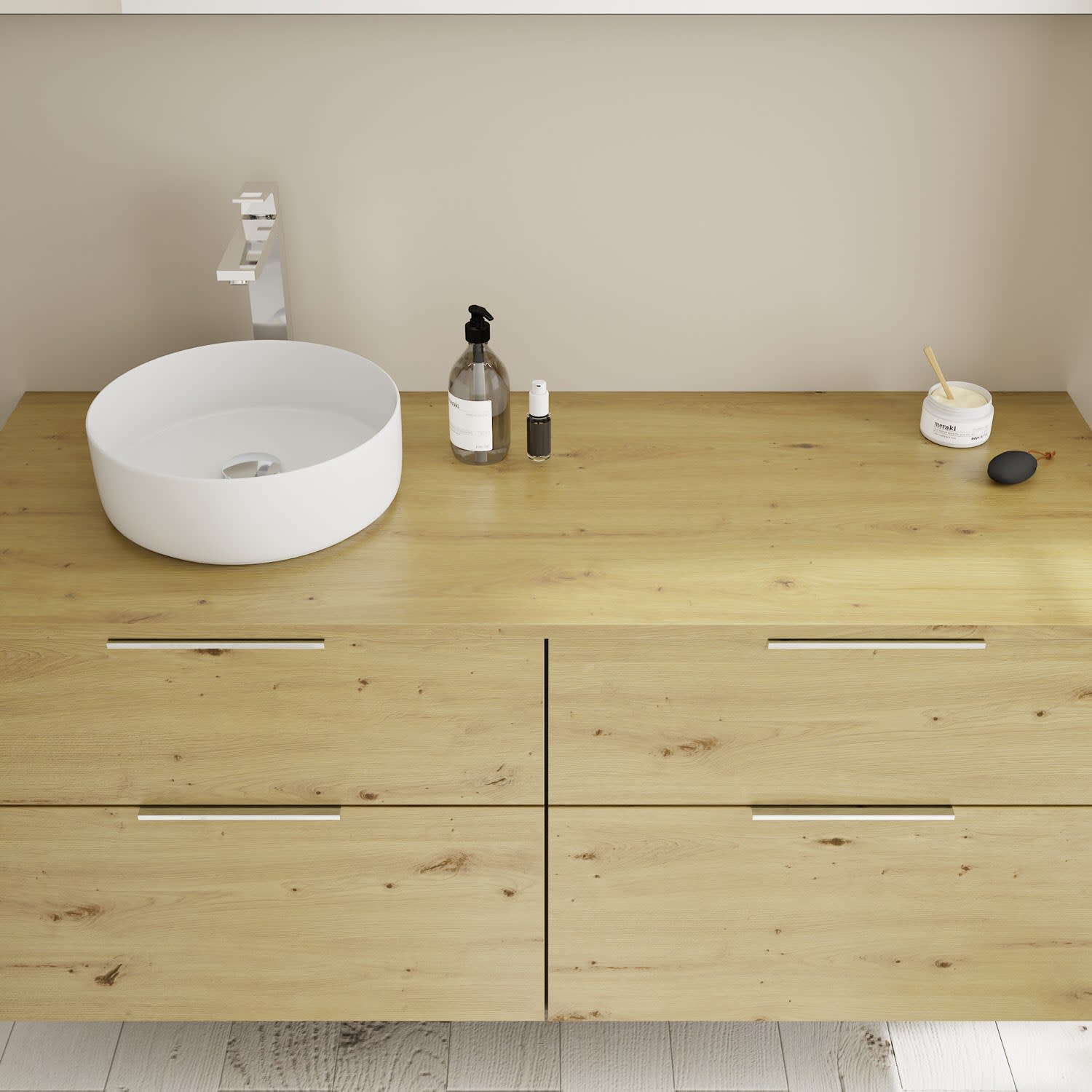 OLTENS Vernal Badmöbel-Set 3-teilig mit 2 Unterschränken mit Schubladen und Konsolenplatte 140 x 25,2/48,6 cm