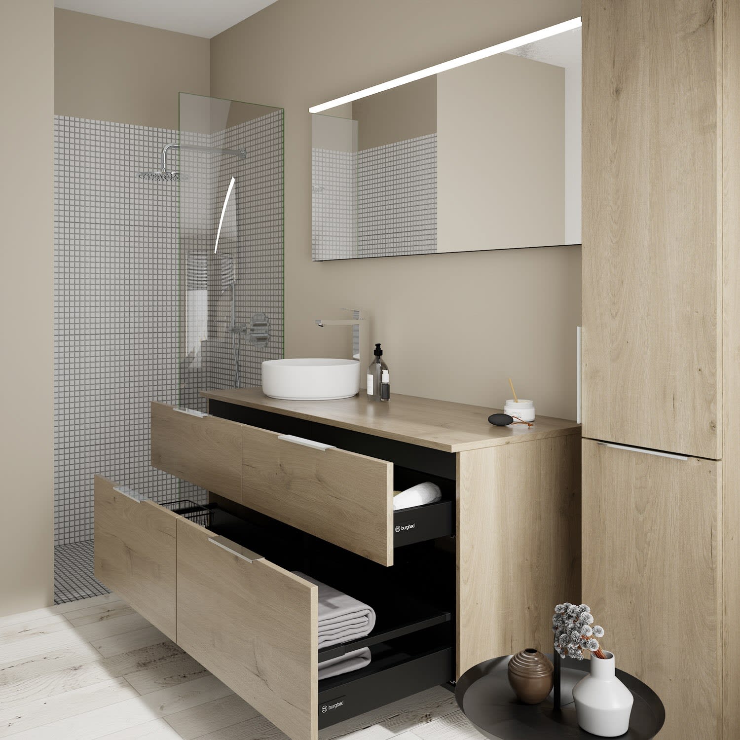 OLTENS Vernal Badmöbel-Set 3-teilig mit 2 Unterschränken mit Schubladen und Konsolenplatte 140 x 25,2/48,6 cm