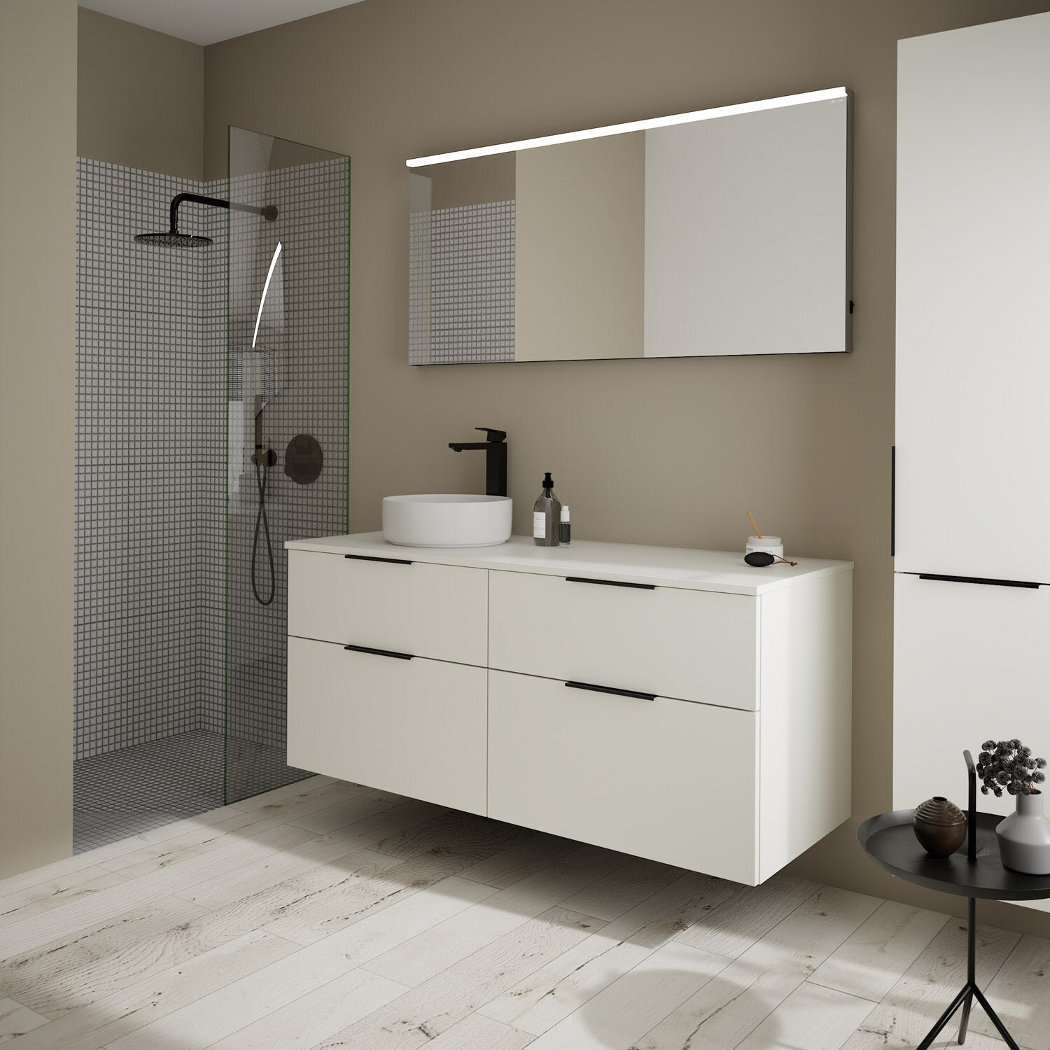 Aufsatzwaschtische müssen immer, mindestens 3 cm von den Außenkanten der Konsolenplatte entfernt sein.