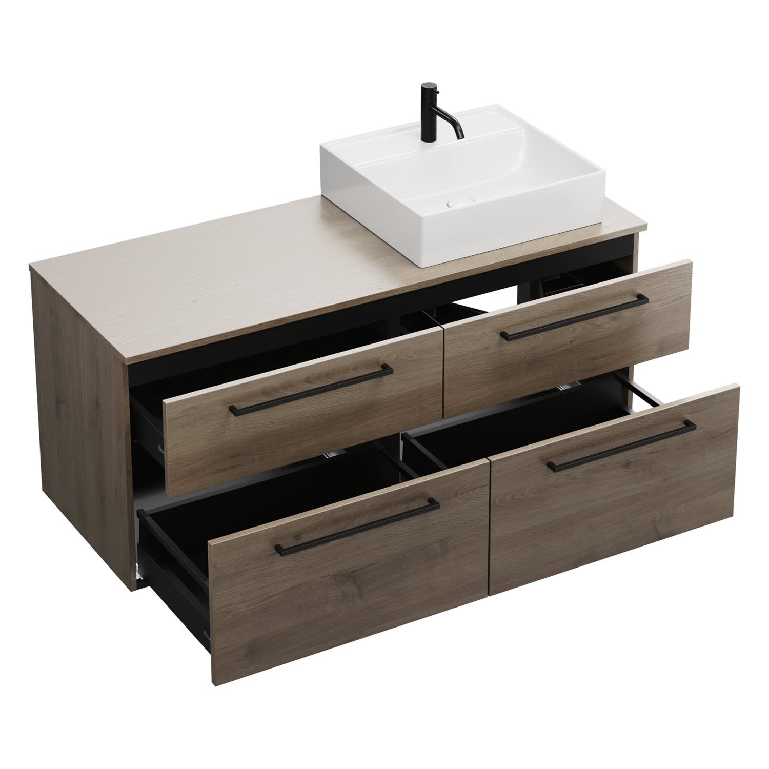 Kronenbach Cube Waschtischkonsole 141 cm mit 4 Auszügen und TIP-ON