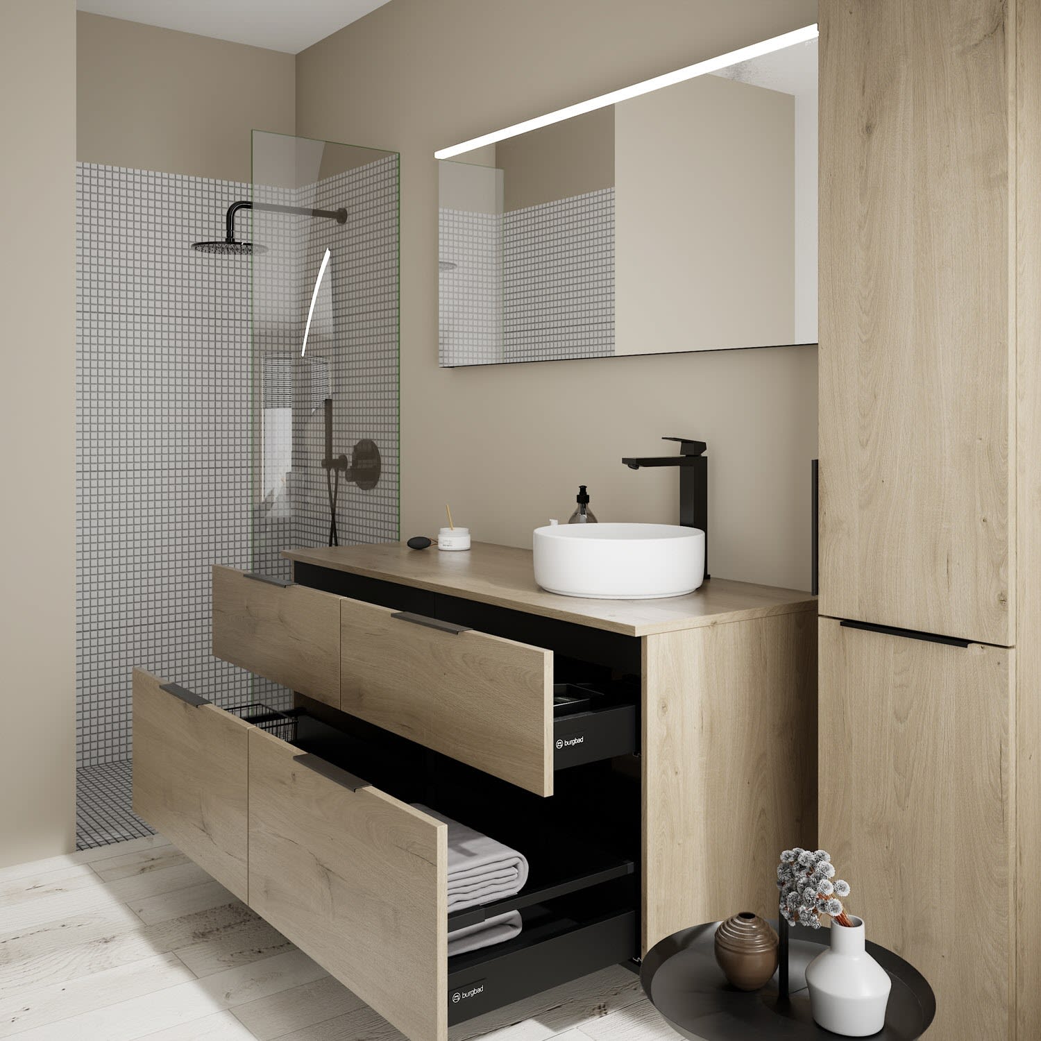 OLTENS Vernal Badmöbel-Set 3-teilig mit 2 Unterschränken mit Schubladen und Konsolenplatte 140 x 25,2/48,6 cm