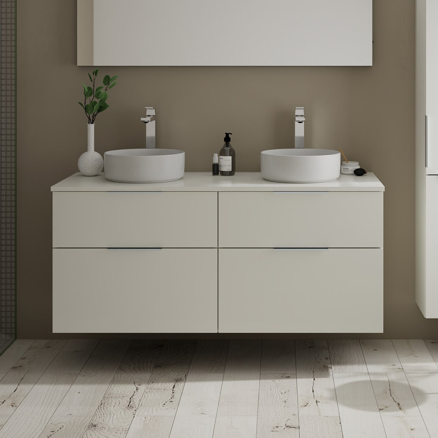 Aufsatzwaschtische müssen immer, mindestens 3 cm von den Außenkanten der Konsolenplatte entfernt sein.
