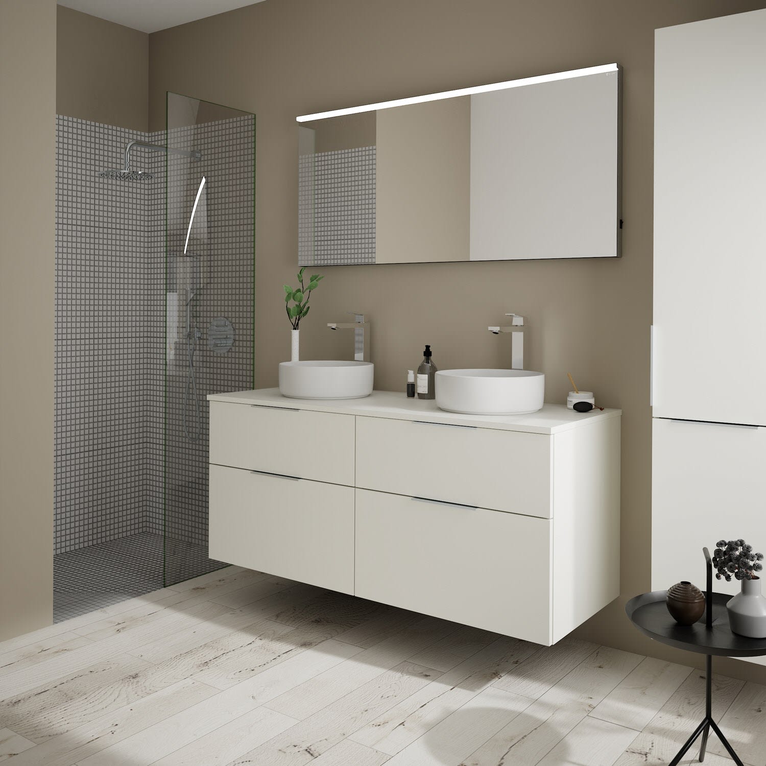 burgbad Eqio Waschtischunterschrank mit Konsolenplatte 140 cm, links und rechts, mit Griff G0146