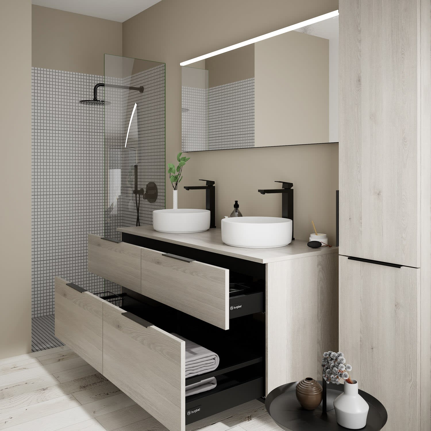 burgbad Eqio Waschtischunterschrank mit Konsolenplatte 140 cm, links und rechts, mit Griff G0200