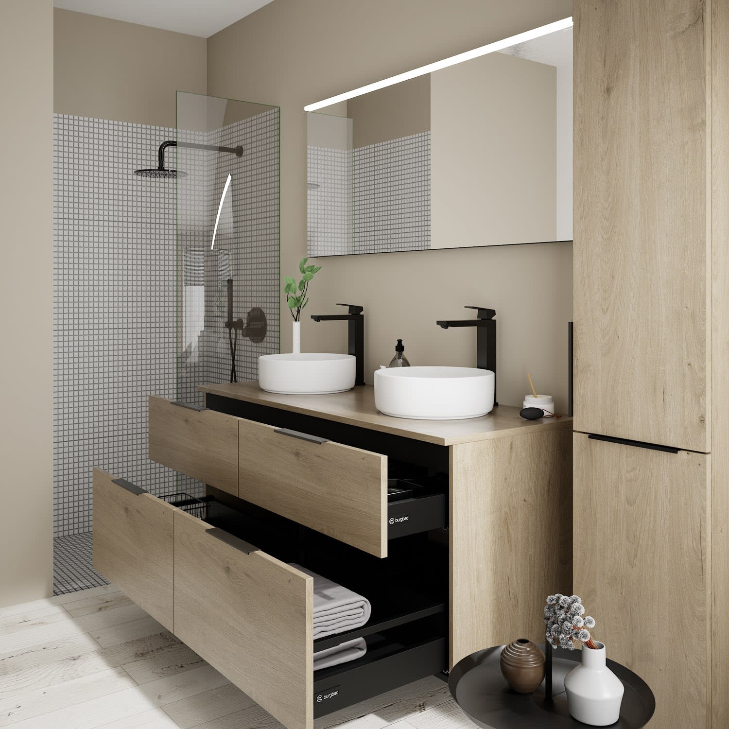 OLTENS Vernal Badmöbel-Set 3-teilig mit 2 Unterschränken mit Schubladen und Konsolenplatte 140 x 25,2/48,6 cm