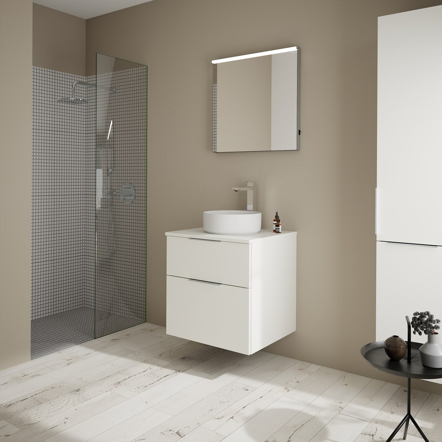 Aufsatzwaschtische müssen immer, mindestens 3 cm von den Außenkanten der Konsolenplatte entfernt sein.