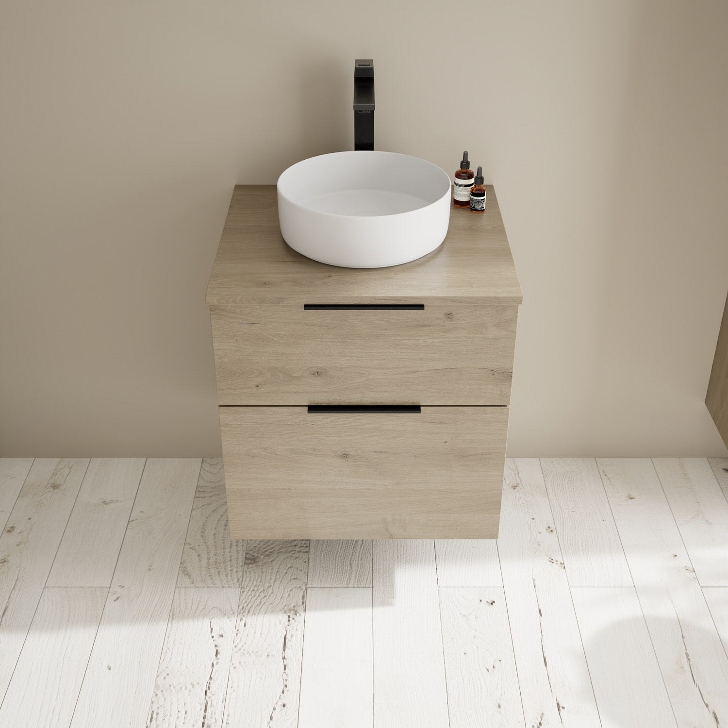 Aufsatzwaschtische müssen immer, mindestens 3 cm von den Außenkanten der Konsolenplatte entfernt sein.