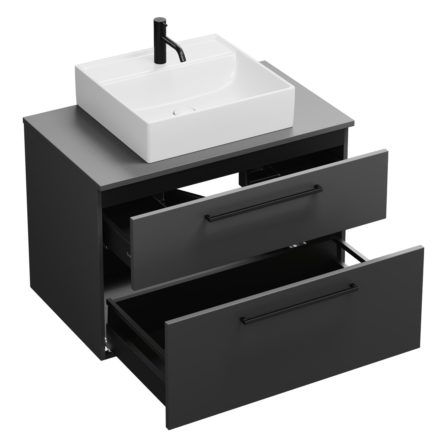 - 1 Schublade oben, 35 cm tief, mit Siphonausschnitt und Inneneinteilung