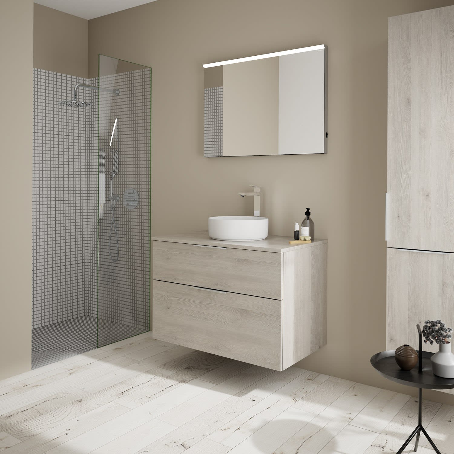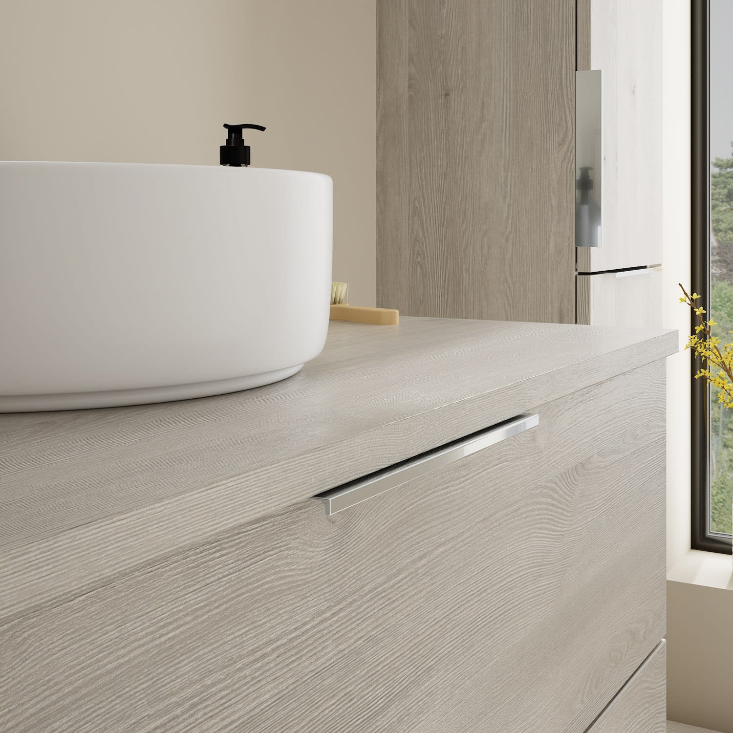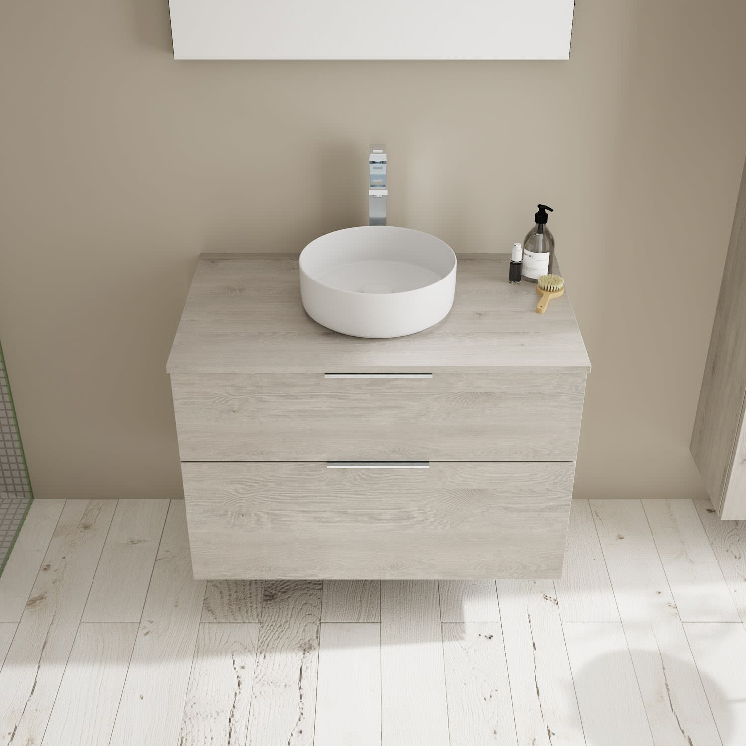 Aufsatzwaschtische müssen immer, mindestens 3 cm von den Außenkanten der Konsolenplatte entfernt sein.
