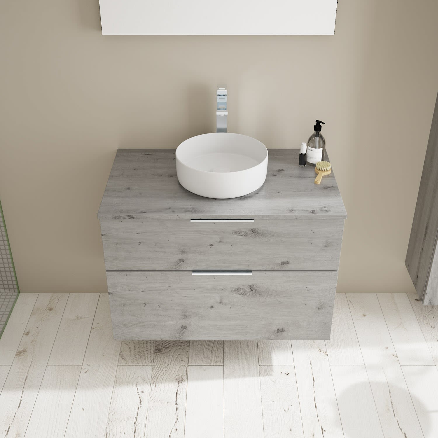 Aufsatzwaschtische müssen immer, mindestens 3 cm von den Außenkanten der Konsolenplatte entfernt sein.