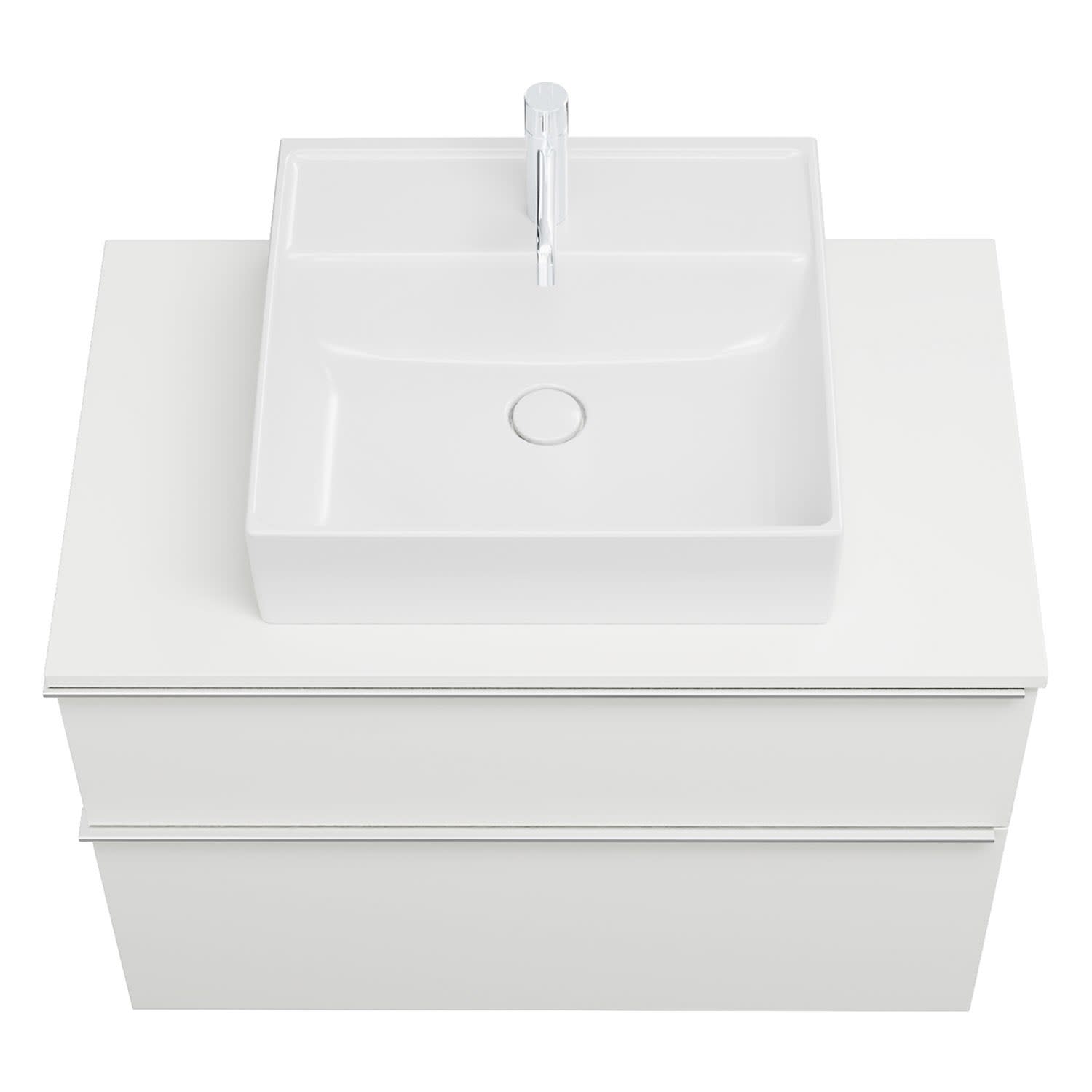 - 1 Schublade oben, 35 cm tief, mit Siphonausschnitt und Inneneinteilung