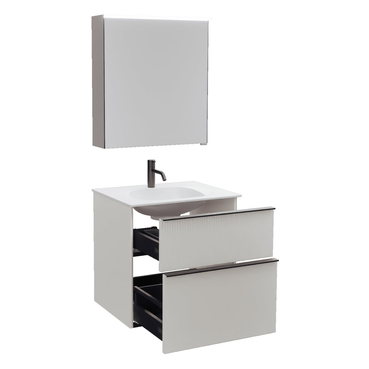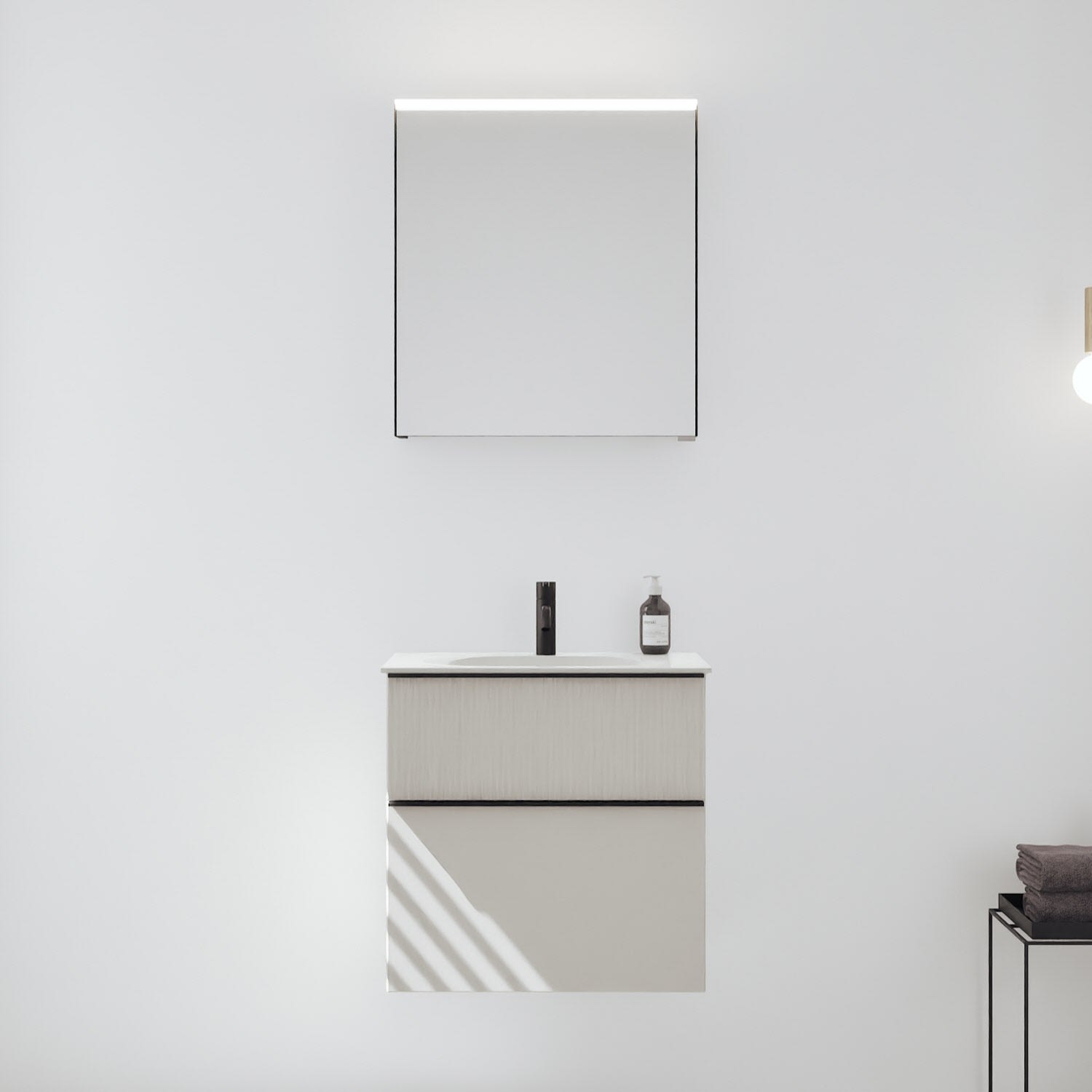 burgbad Fiumo 2.0 Badmöbelset 62 cm mit Waschtisch mit Unterschrank mit Griff G0200 und Spiegelschrank
