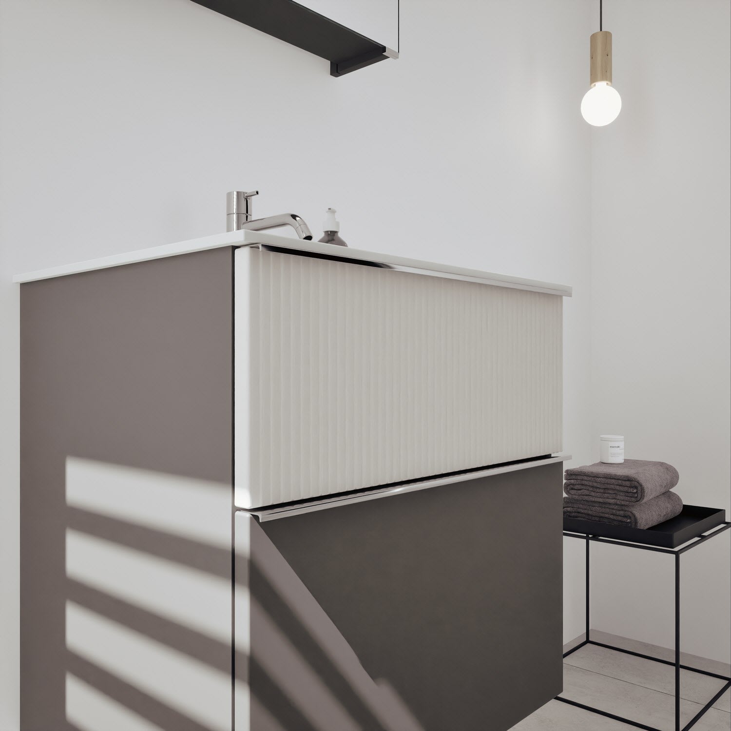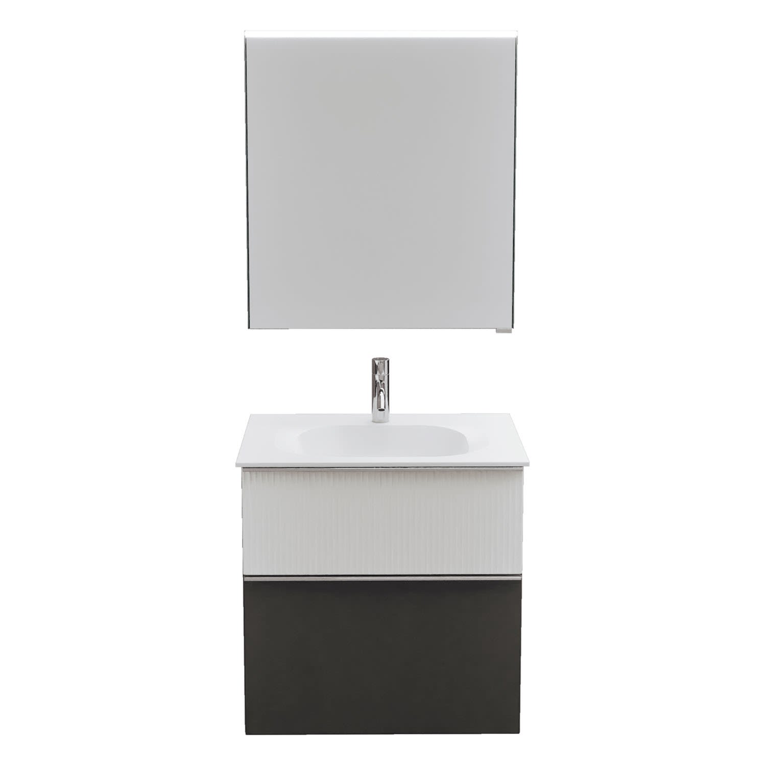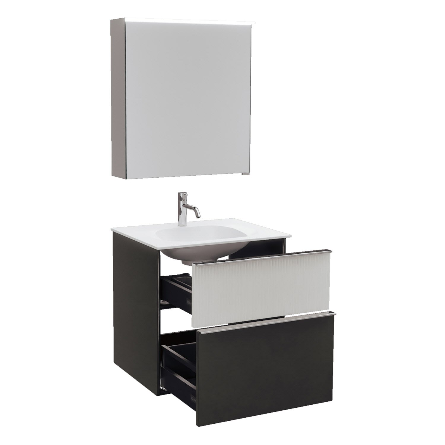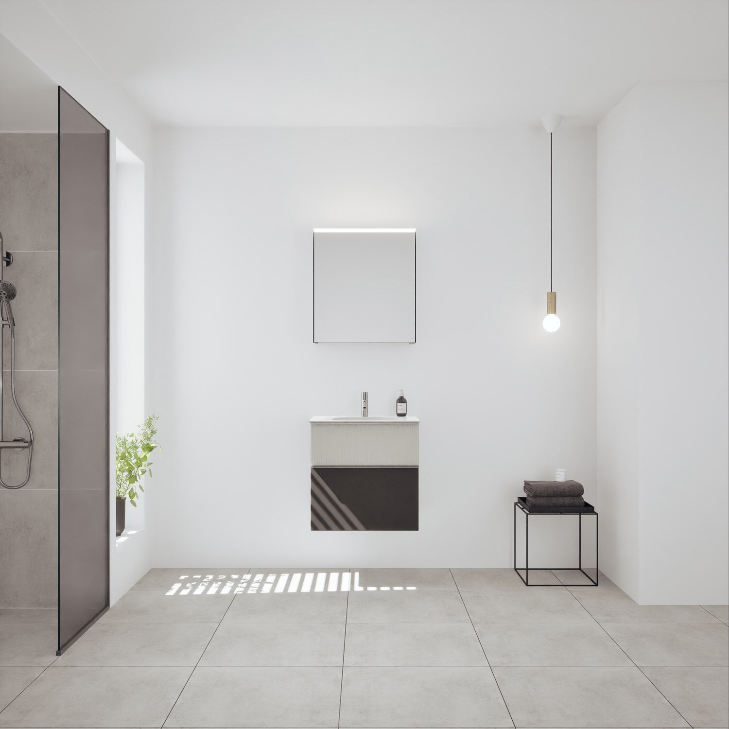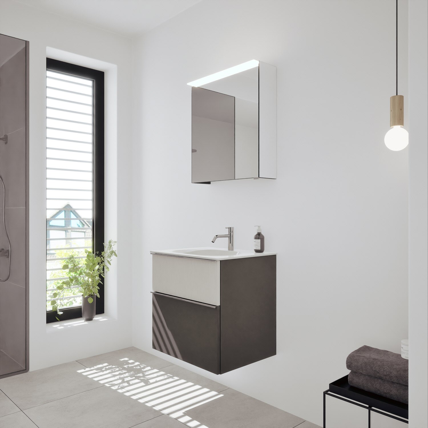 burgbad Fiumo 2.0 Badmöbelset 62 cm mit Waschtisch mit Unterschrank mit Griff G0146 und Spiegelschrank
