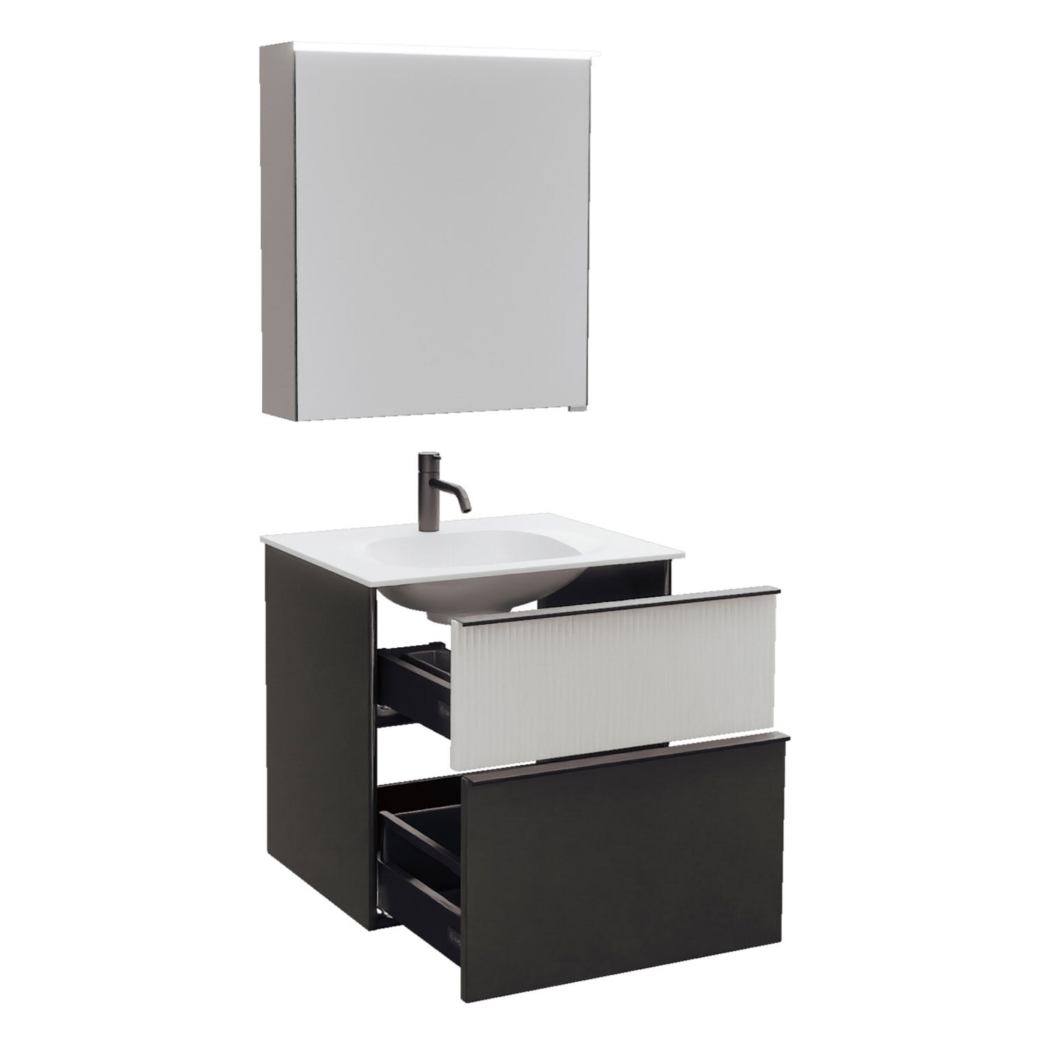burgbad Fiumo 2.0 Badmöbelset 62 cm mit Waschtisch mit Unterschrank mit Griff G0200 und Spiegelschrank