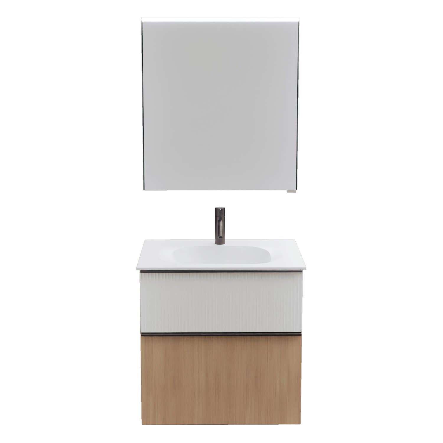burgbad Fiumo 2.0 Badmöbelset 62 cm mit Waschtisch mit Unterschrank mit Griff G0200 und Spiegelschrank