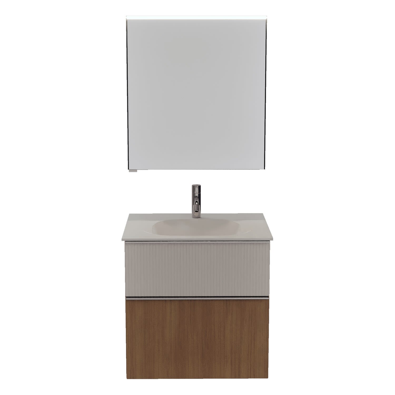 burgbad Fiumo 2.0 Badmöbelset 62 cm mit Waschtisch mit Unterschrank mit Griff G0146 und Spiegelschrank