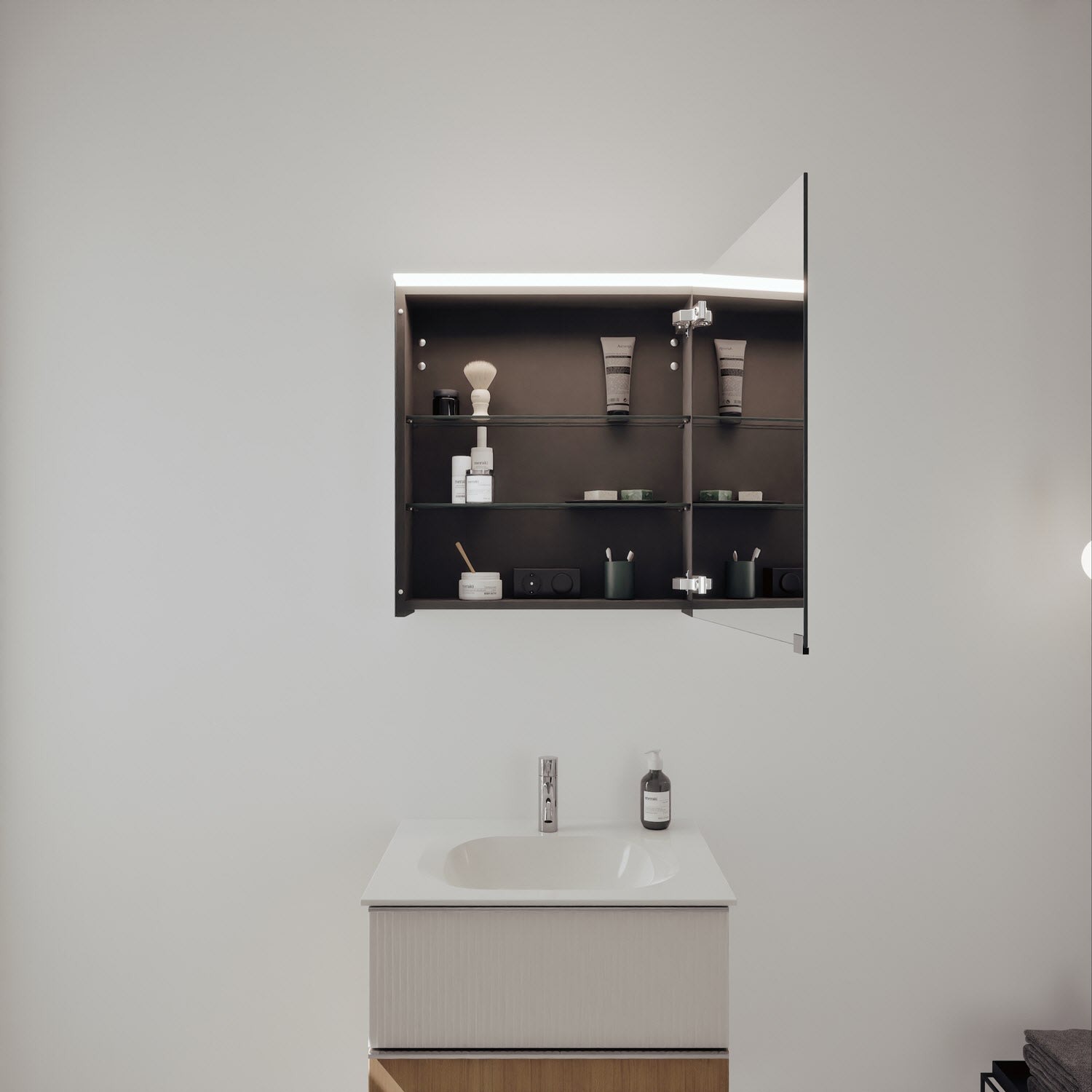- Spiegelschrank, Waschtischunterschrank, Waschtisch, burgbad cleanFlow, Befestigung außer Stockschrauben