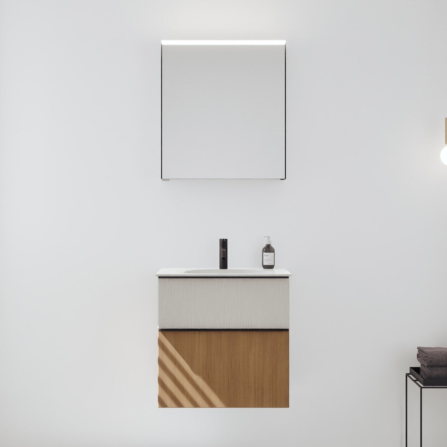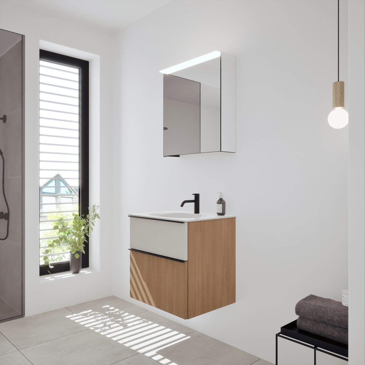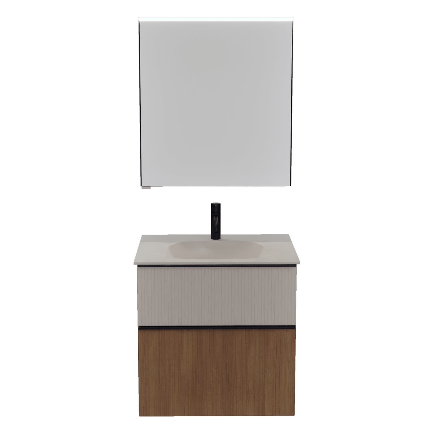 burgbad Fiumo 2.0 Badmöbelset 62 cm mit Waschtisch mit Unterschrank mit Griff G0200 und Spiegelschrank