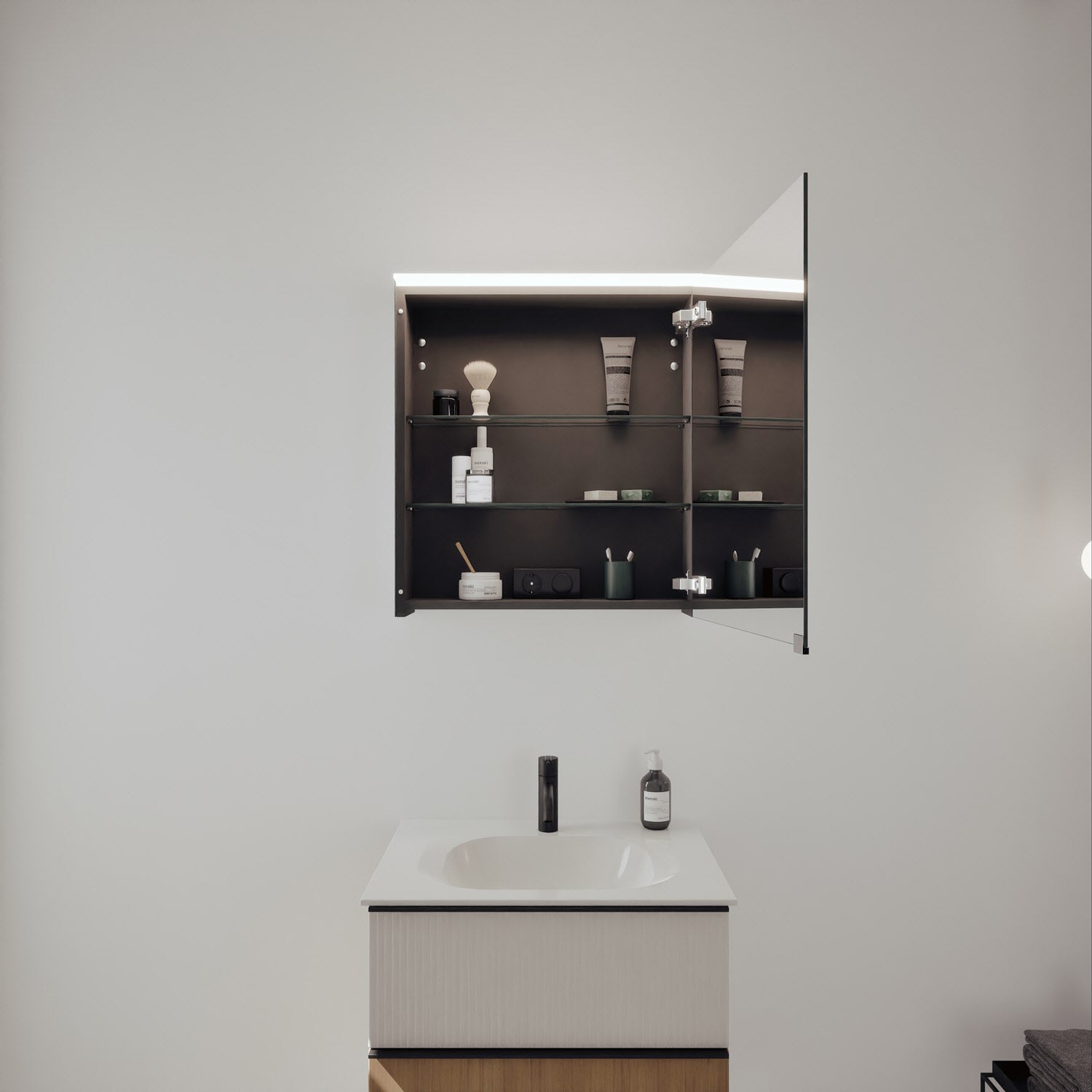 - Spiegelschrank, Waschtischunterschrank, Waschtisch, burgbad cleanFlow, Befestigung außer Stockschrauben