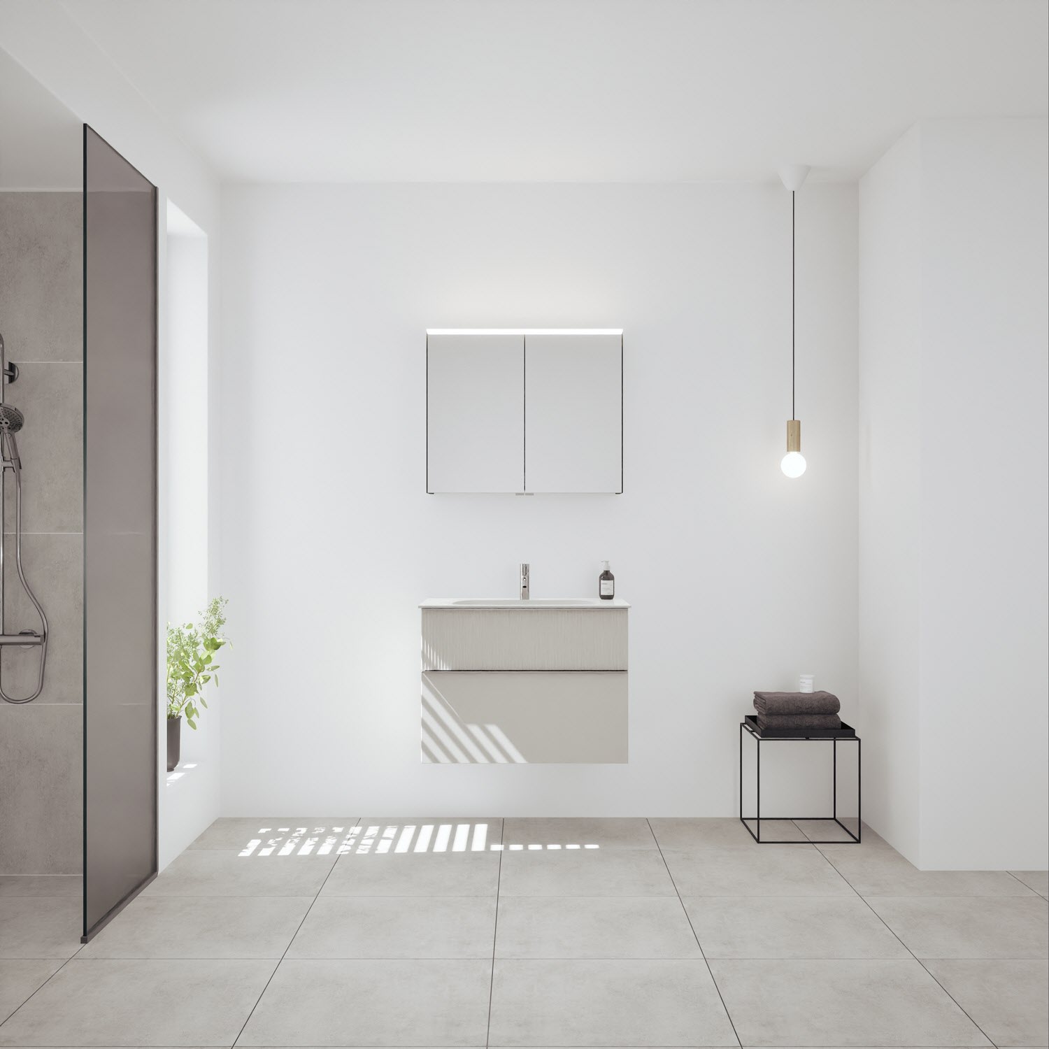 burgbad Fiumo 2.0 Badmöbelset 82 cm mit Waschtisch mit Unterschrank mit Griff G0146 und Spiegelschrank