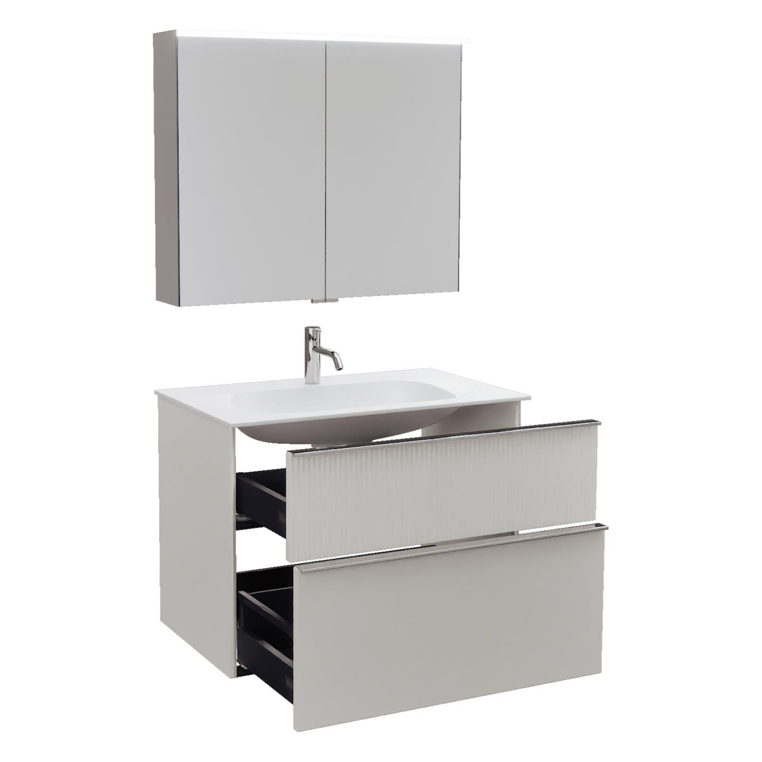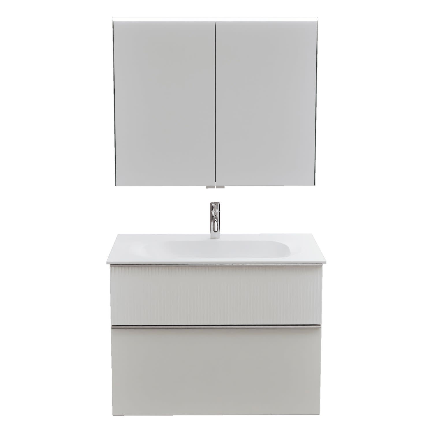 burgbad Fiumo 2.0 Badmöbelset 82 cm mit Waschtisch mit Unterschrank mit Griff G0146 und Spiegelschrank