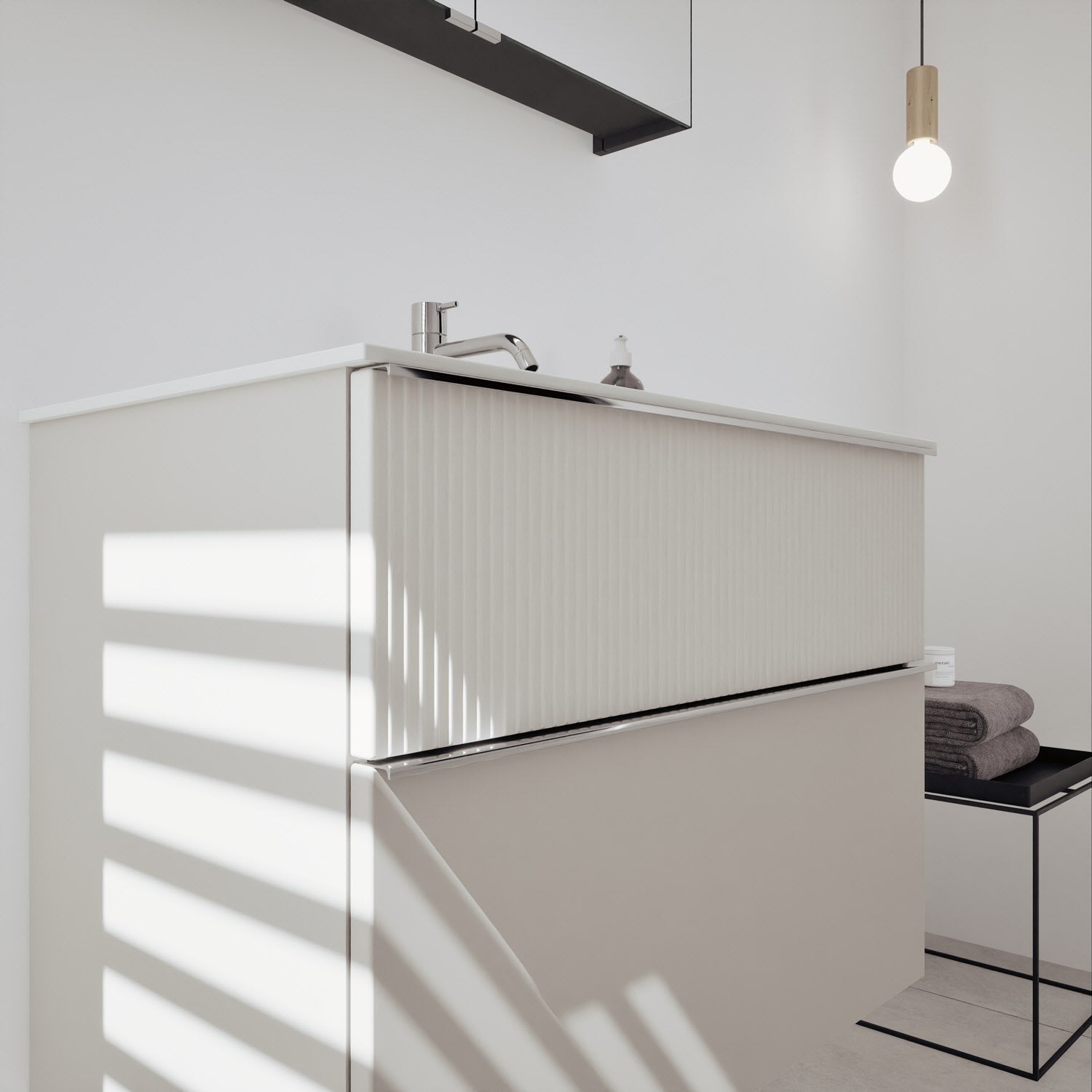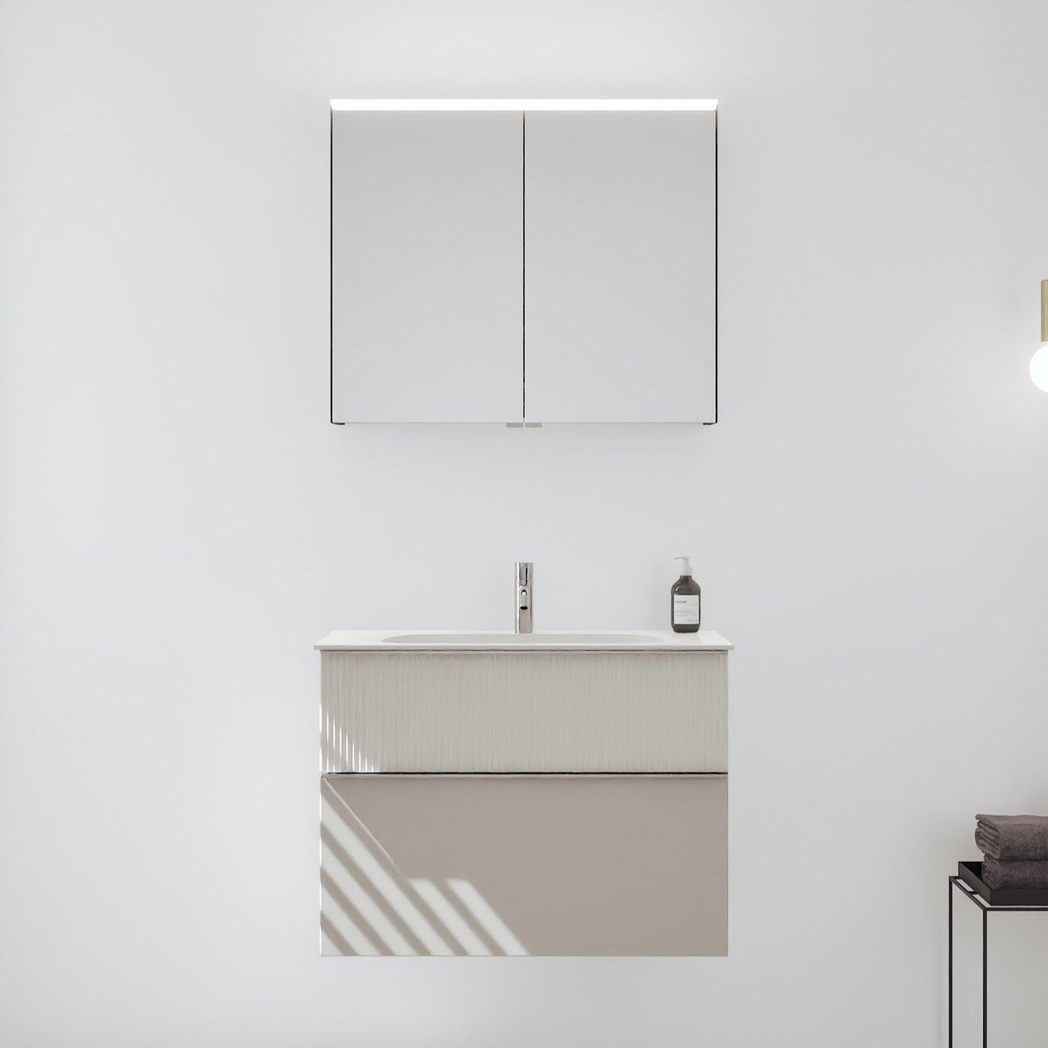 - Spiegelschrank, Waschtischunterschrank, Waschtisch, burgbad cleanFlow, Befestigung außer Stockschrauben