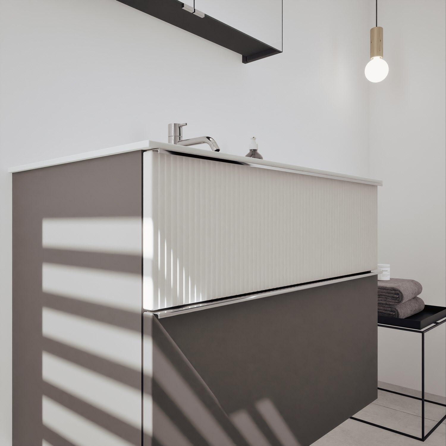 - Spiegelschrank, Waschtischunterschrank, Waschtisch, burgbad cleanFlow, Befestigung außer Stockschrauben
