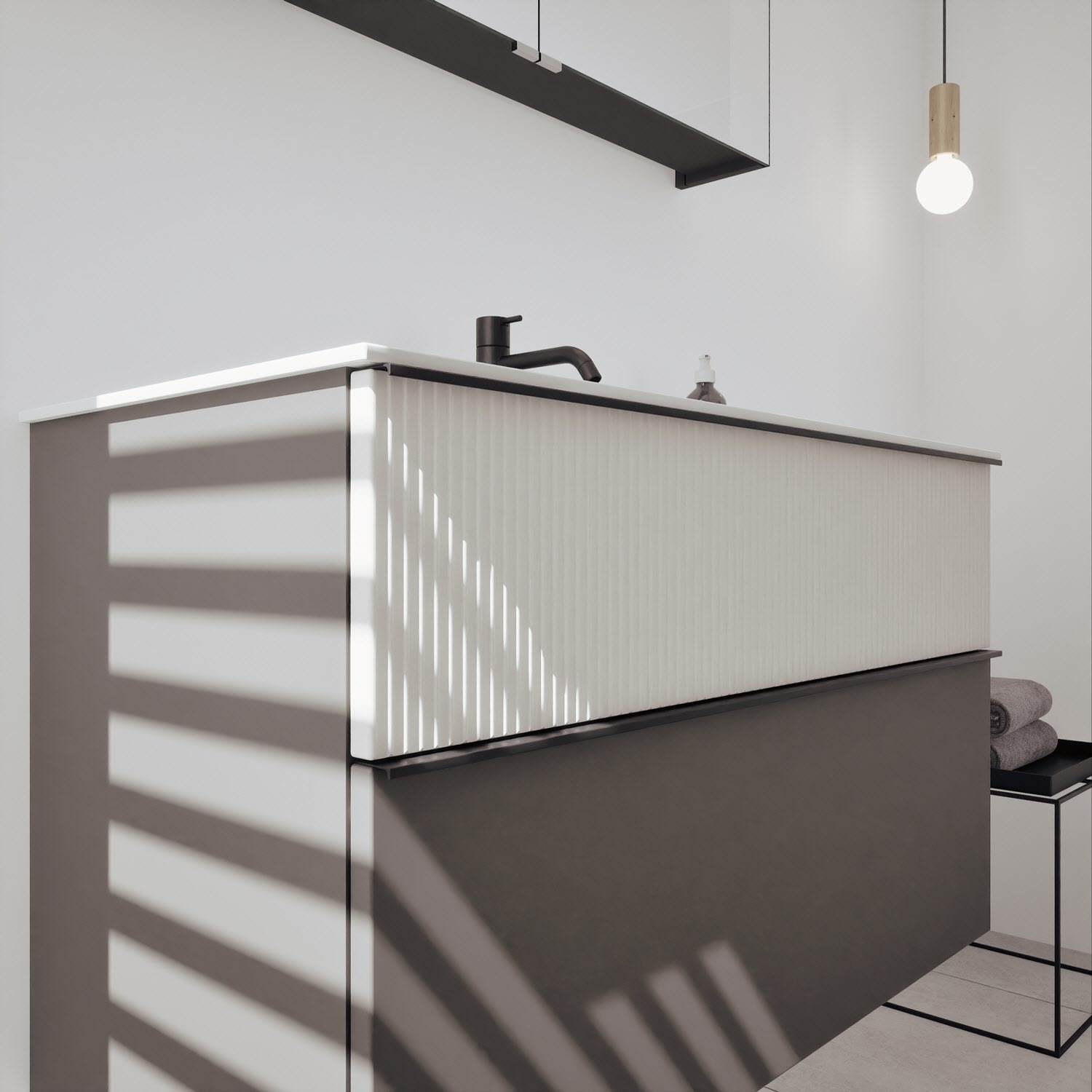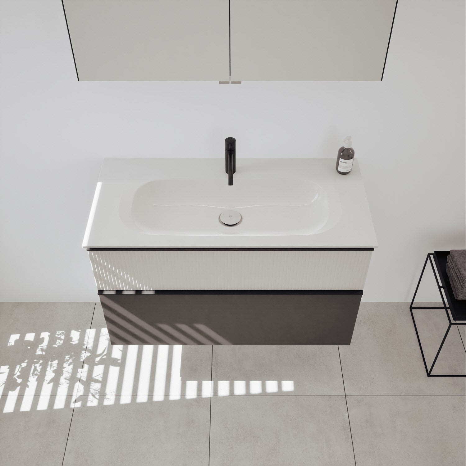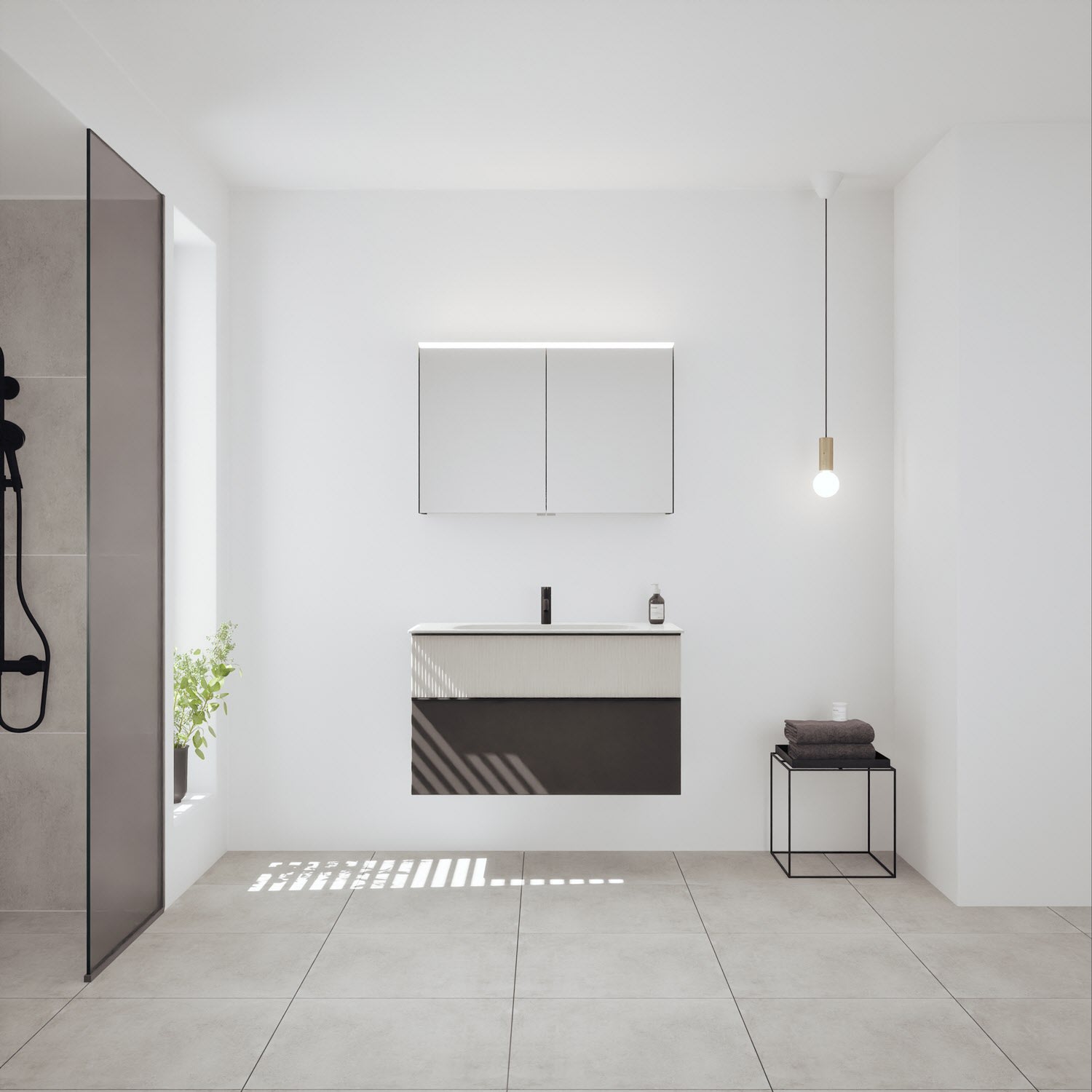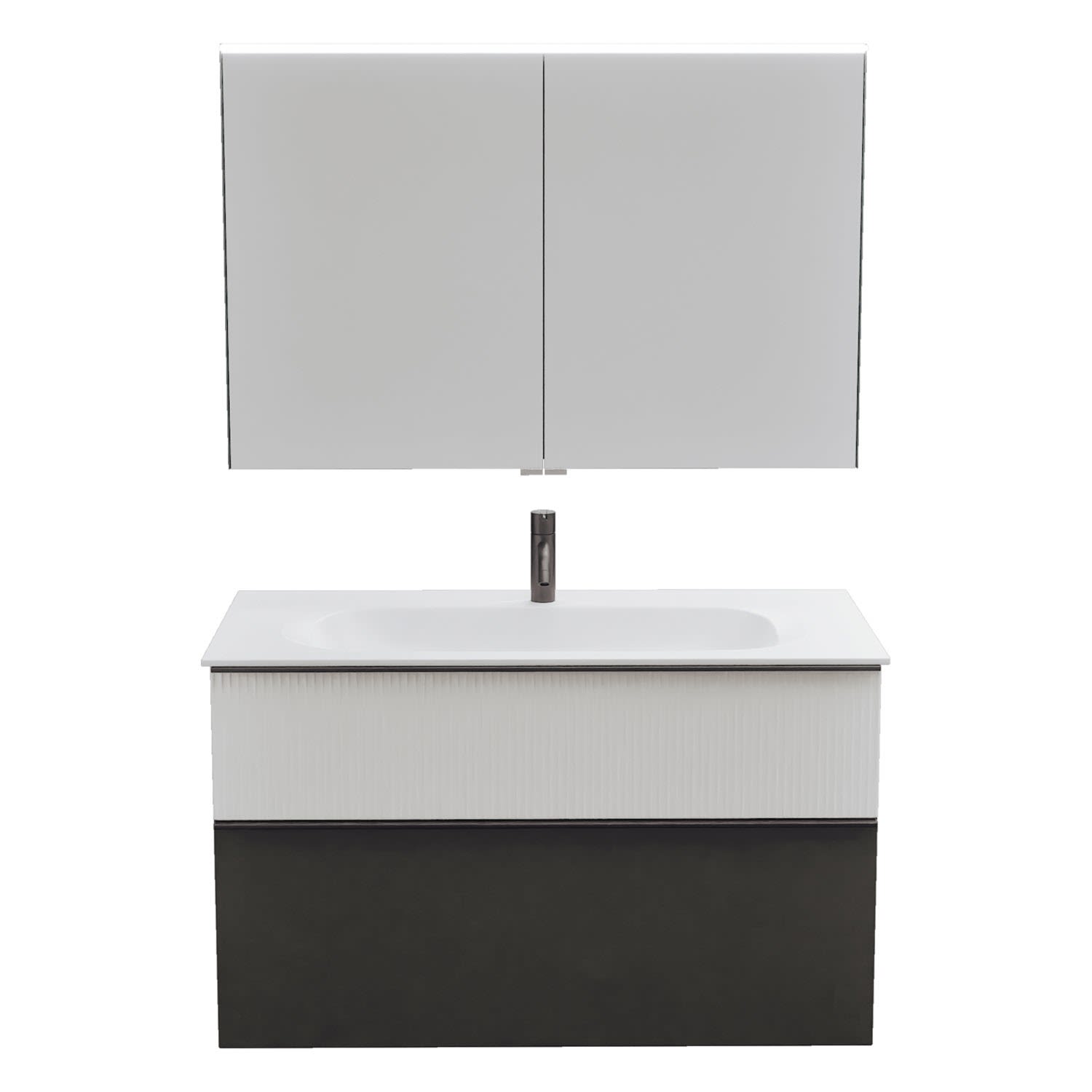 burgbad Fiumo 2.0 Badmöbelset 102 cm mit Waschtisch mit Unterschrank mit Griff G0200 und Spiegelschrank