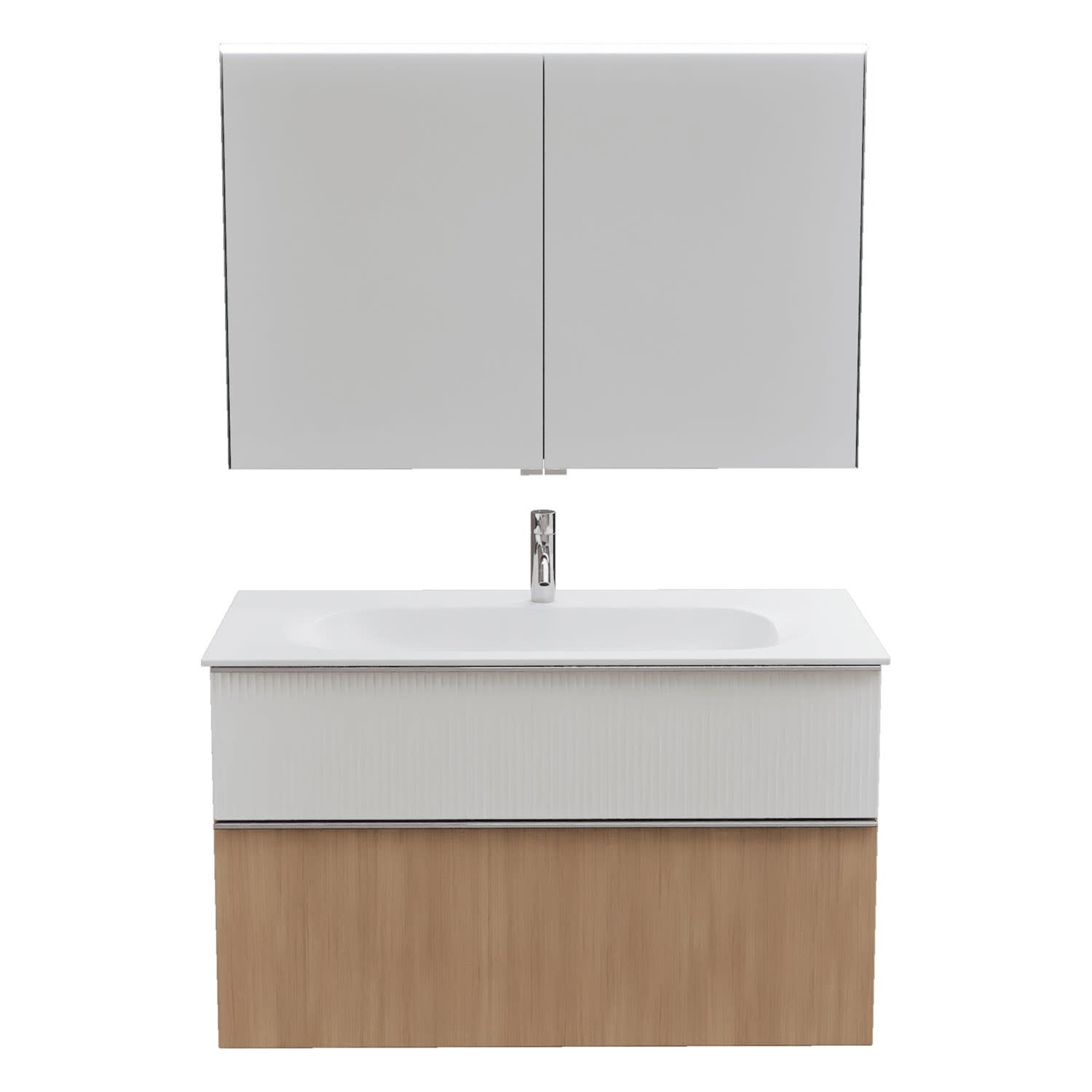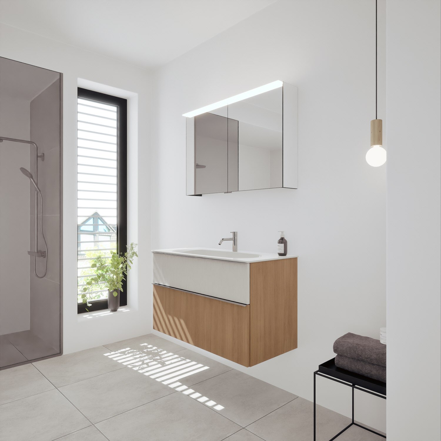 burgbad Fiumo 2.0 Badmöbelset 102 cm mit Waschtisch mit Unterschrank mit Griff G0146 und Spiegelschrank