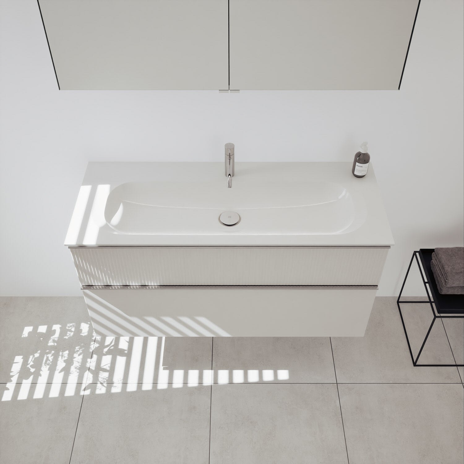 burgbad Fiumo 2.0 Badmöbelset 122 cm mit Waschtisch mit Unterschrank mit Griff G0146 und Spiegelschrank