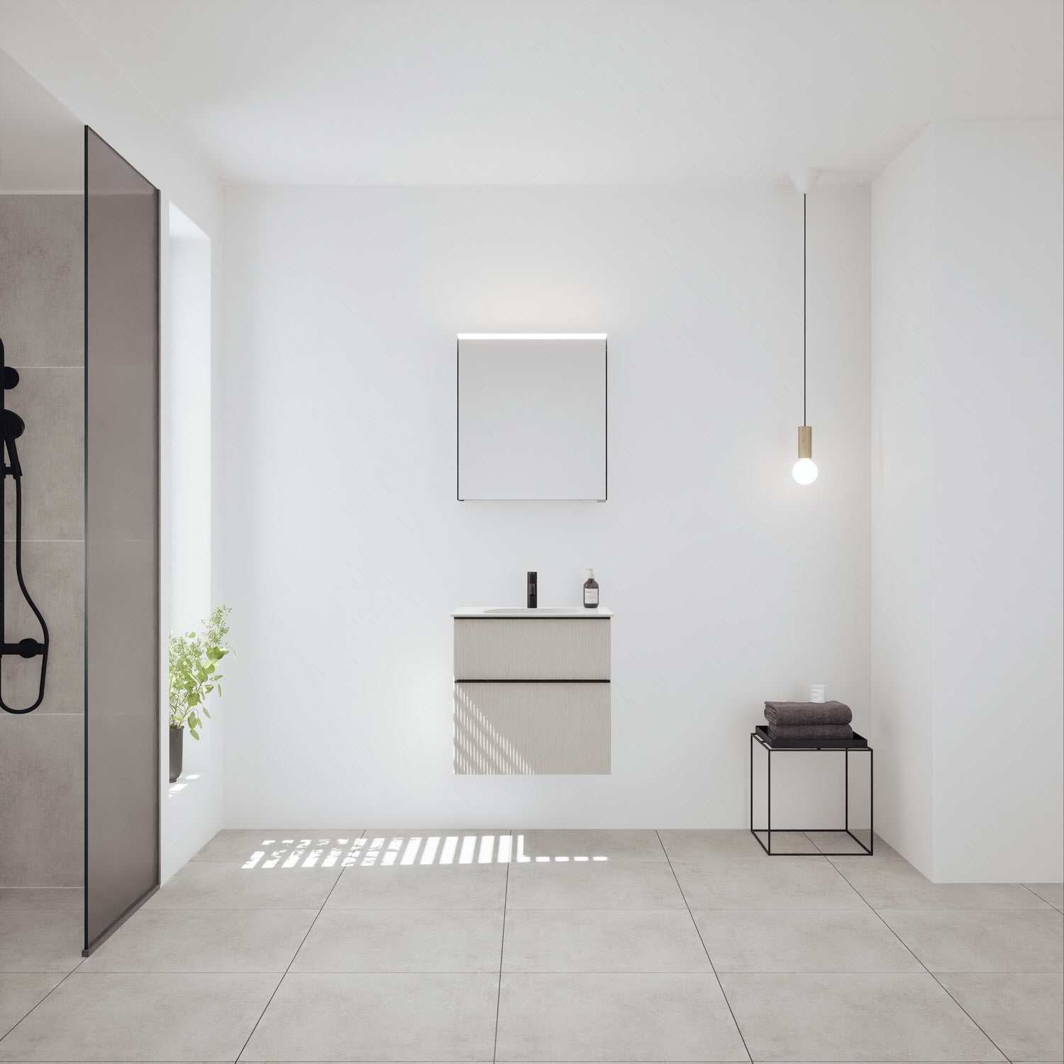 burgbad Fiumo 2.0 Badmöbelset 62 cm mit Waschtisch mit Unterschrank mit Griff G0200 und Spiegelschrank