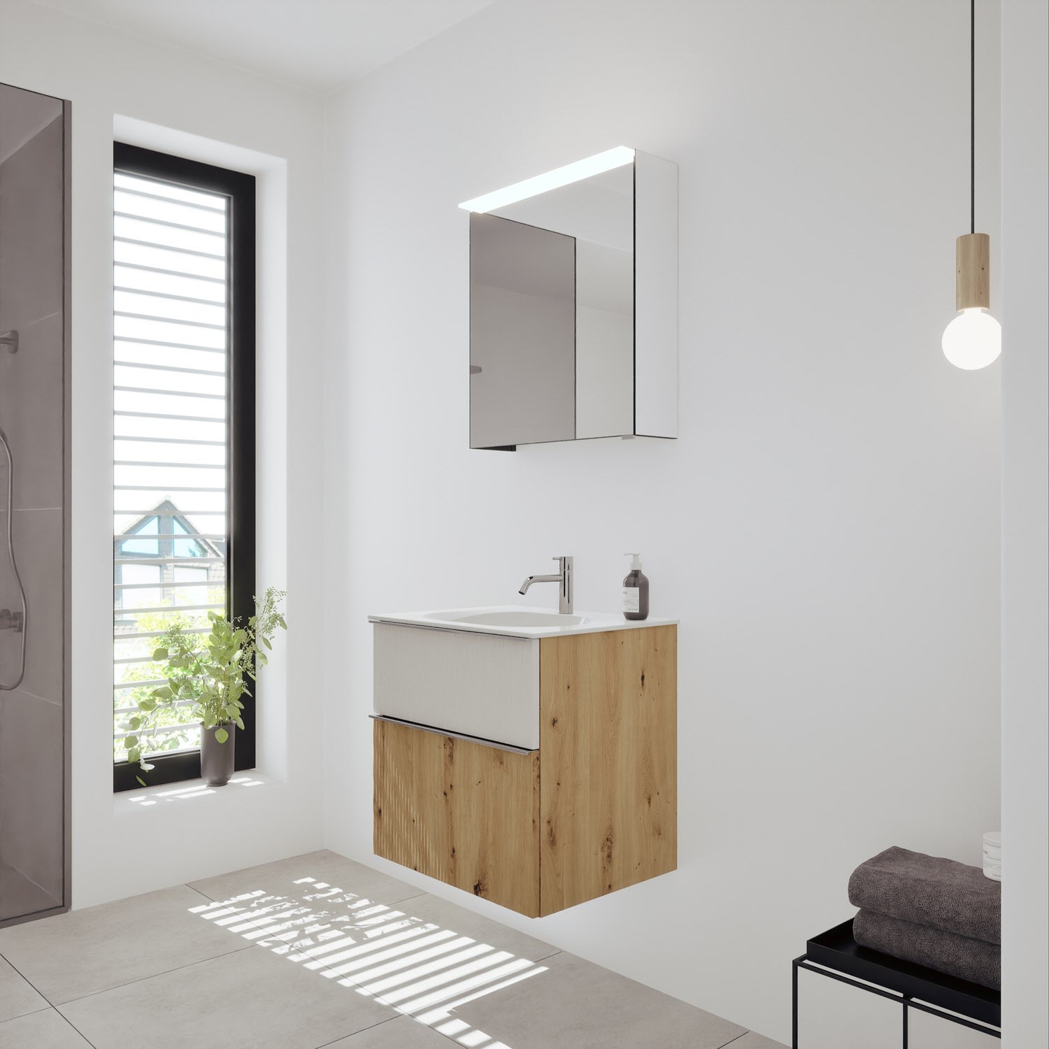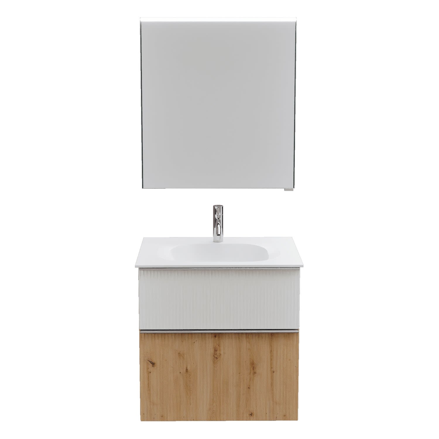 burgbad Fiumo 2.0 Badmöbelset 62 cm mit Waschtisch mit Unterschrank mit Griff G0146 und Spiegelschrank