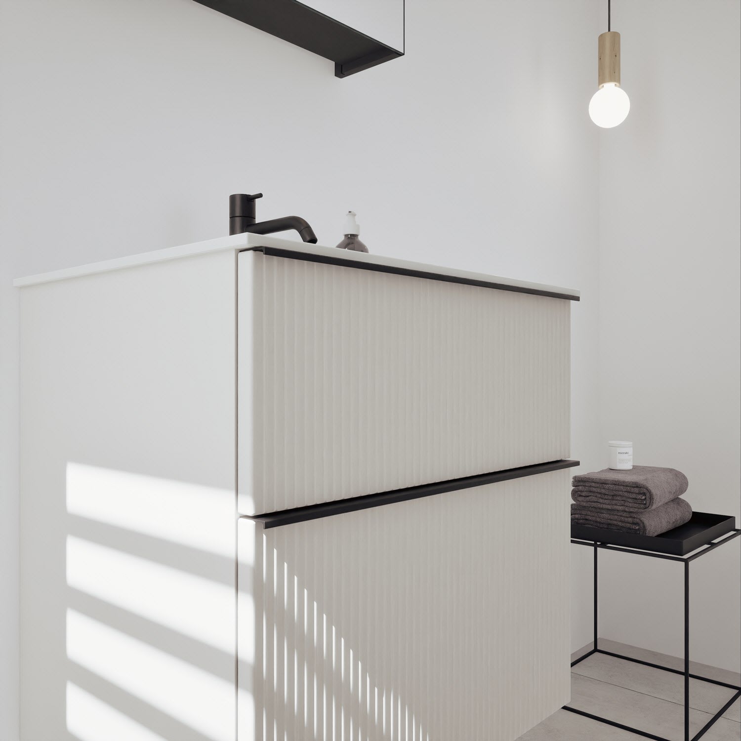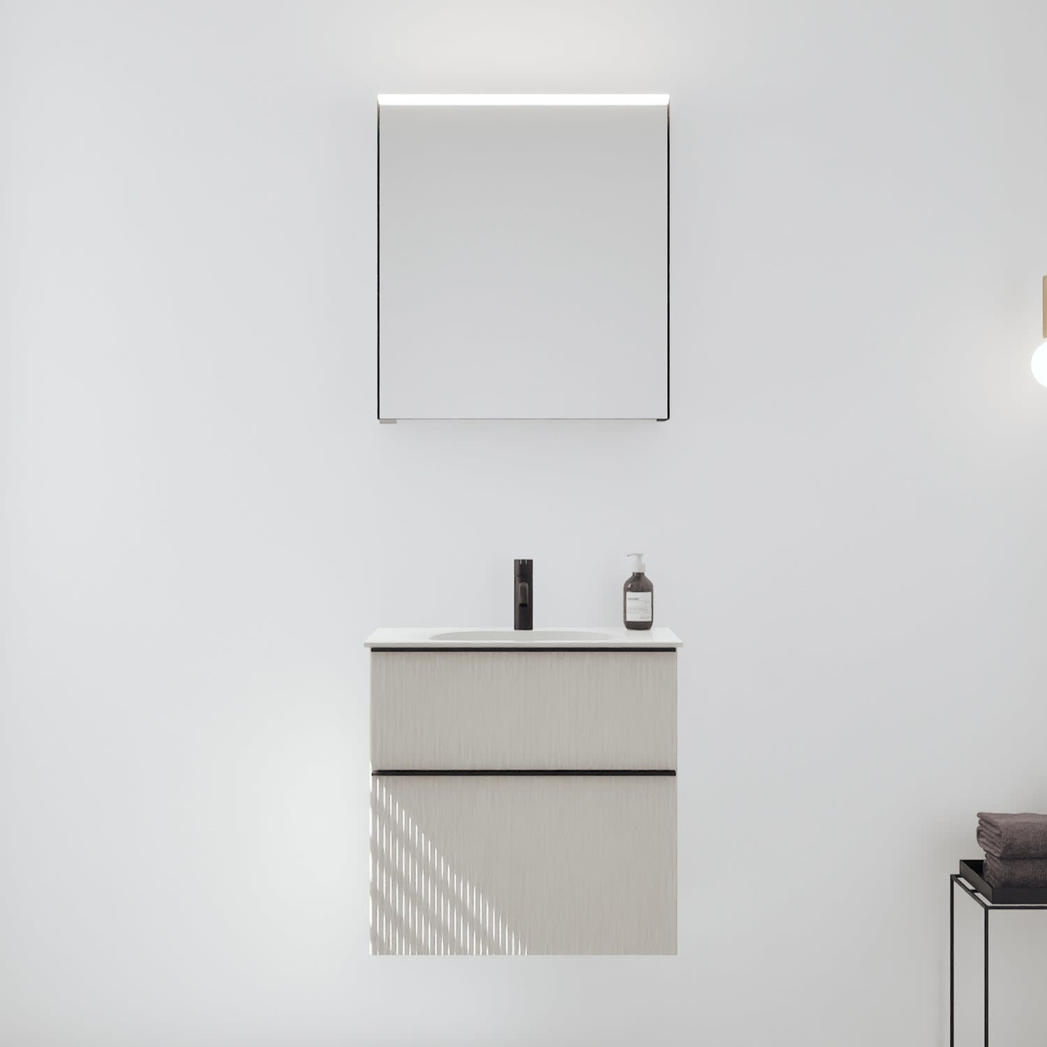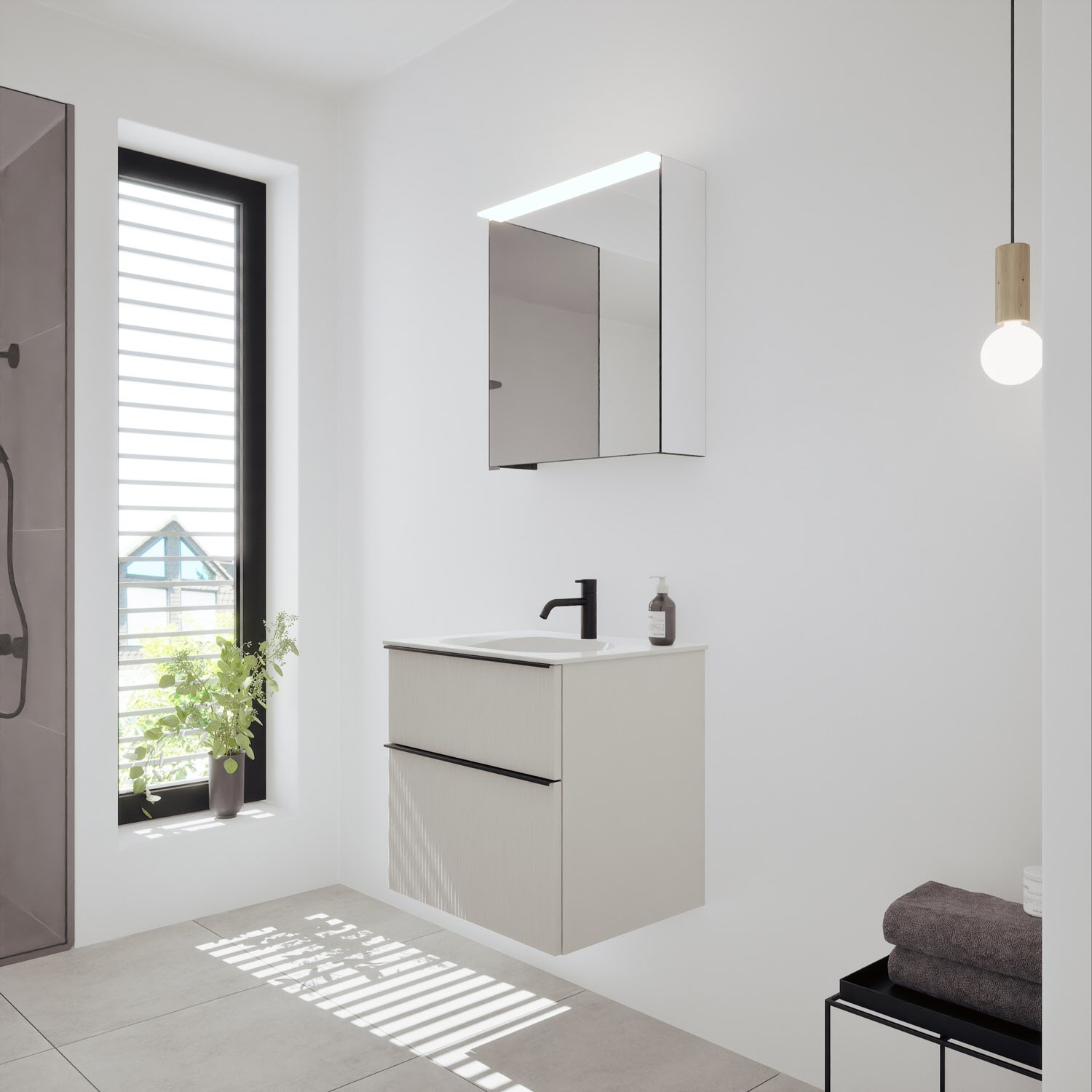 burgbad Fiumo 2.0 Badmöbelset 62 cm mit Waschtisch mit Unterschrank mit Griff G0200 und Spiegelschrank