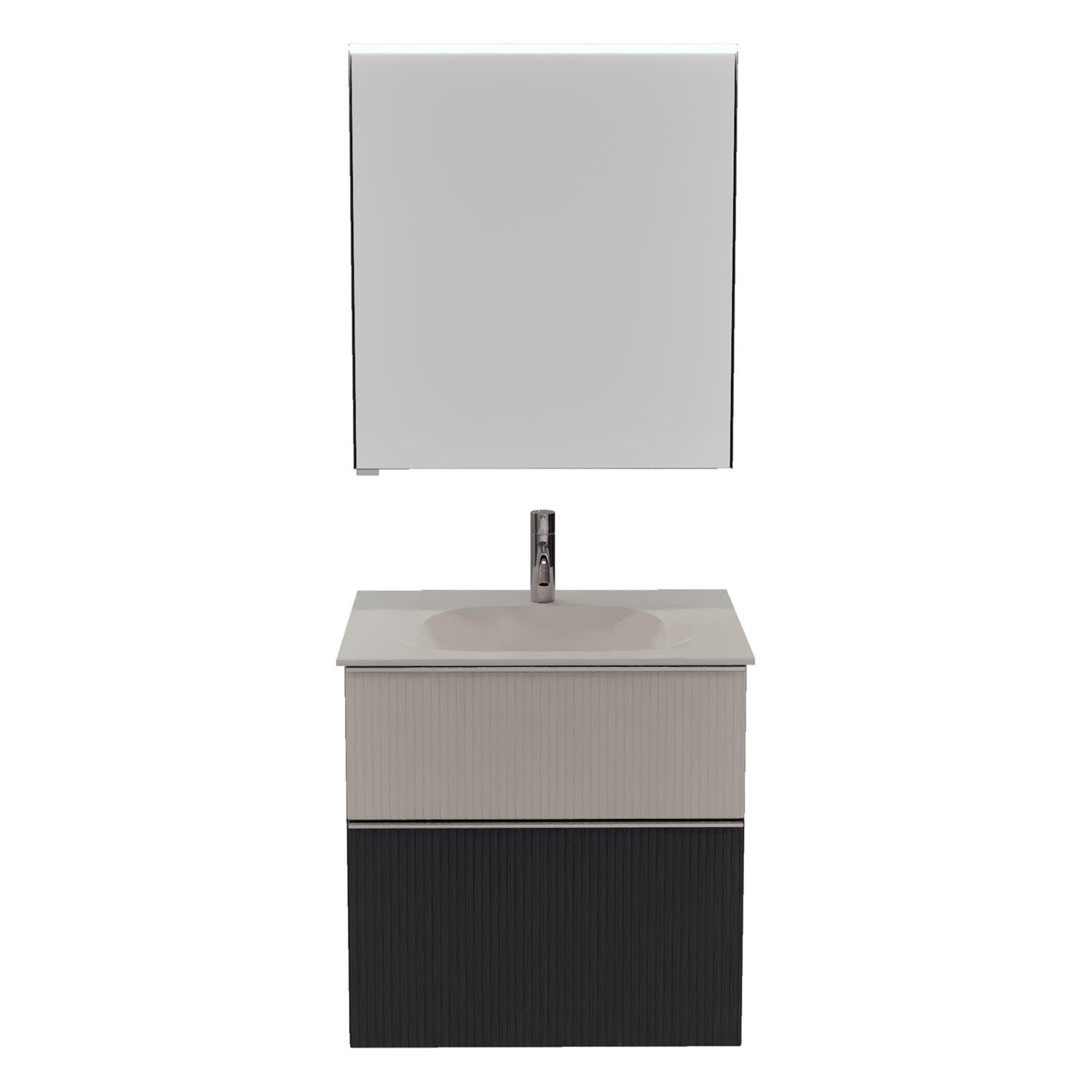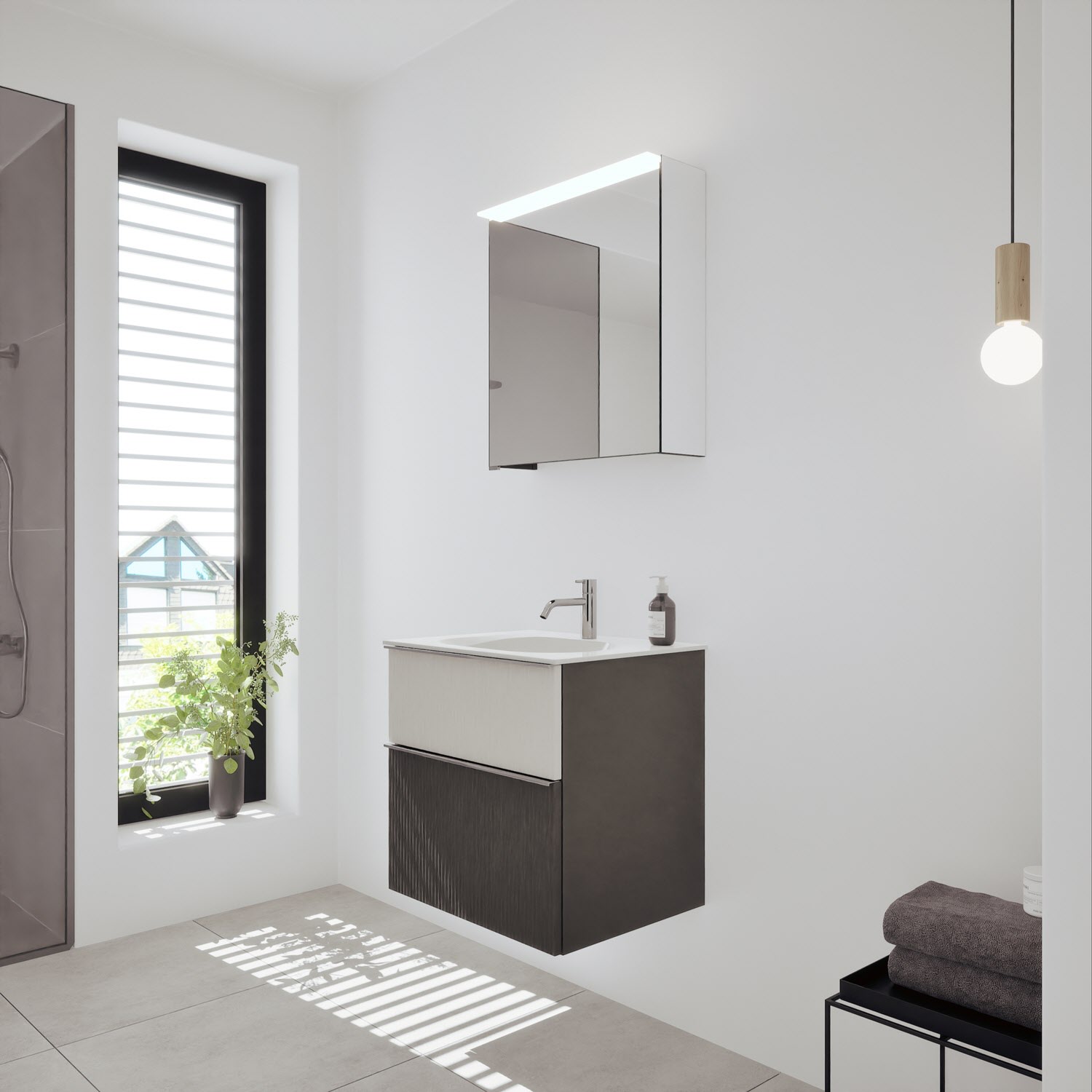 burgbad Fiumo 2.0 Badmöbelset 62 cm mit Waschtisch mit Unterschrank mit Griff G0146 und Spiegelschrank