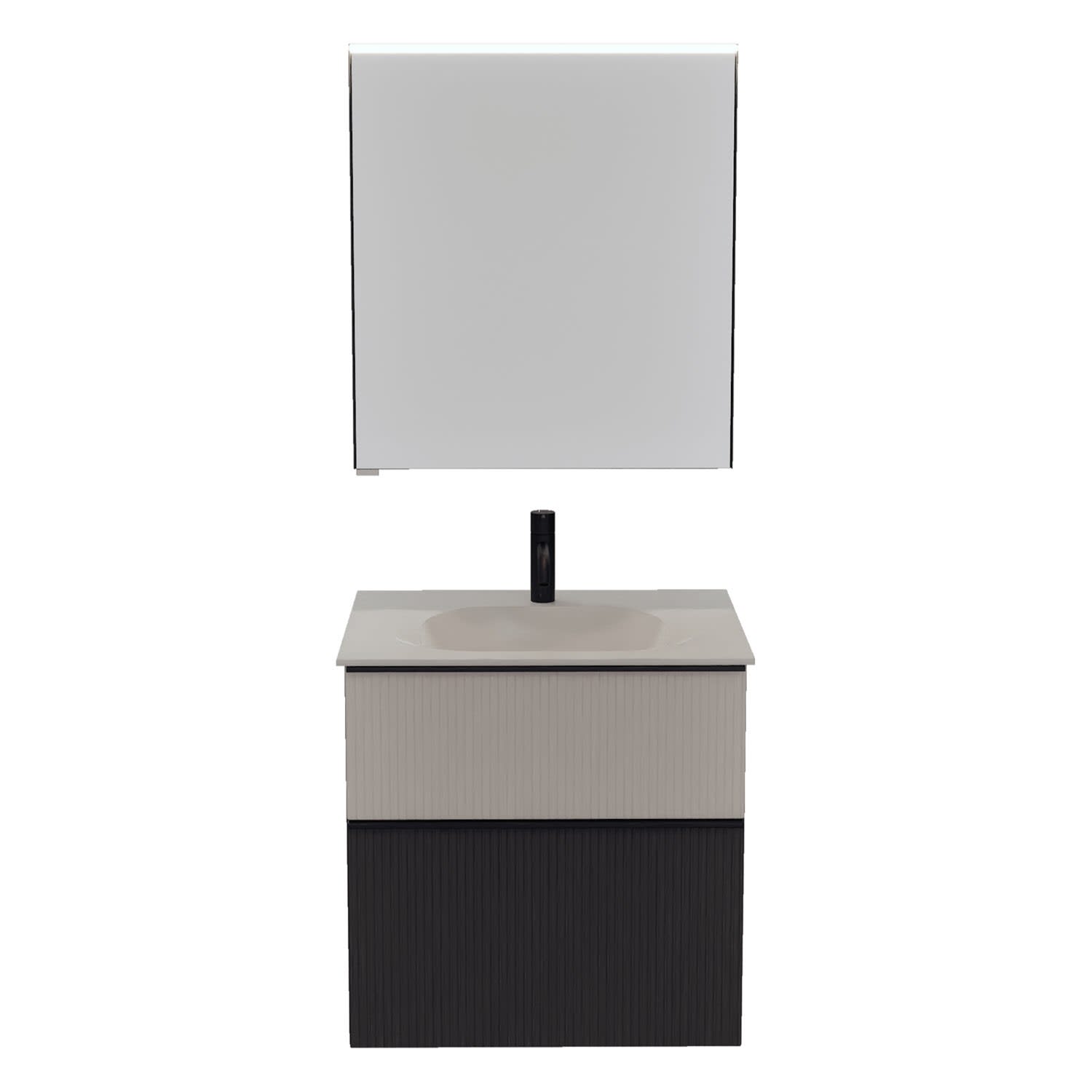 burgbad Fiumo 2.0 Badmöbelset 62 cm mit Waschtisch mit Unterschrank mit Griff G0200 und Spiegelschrank