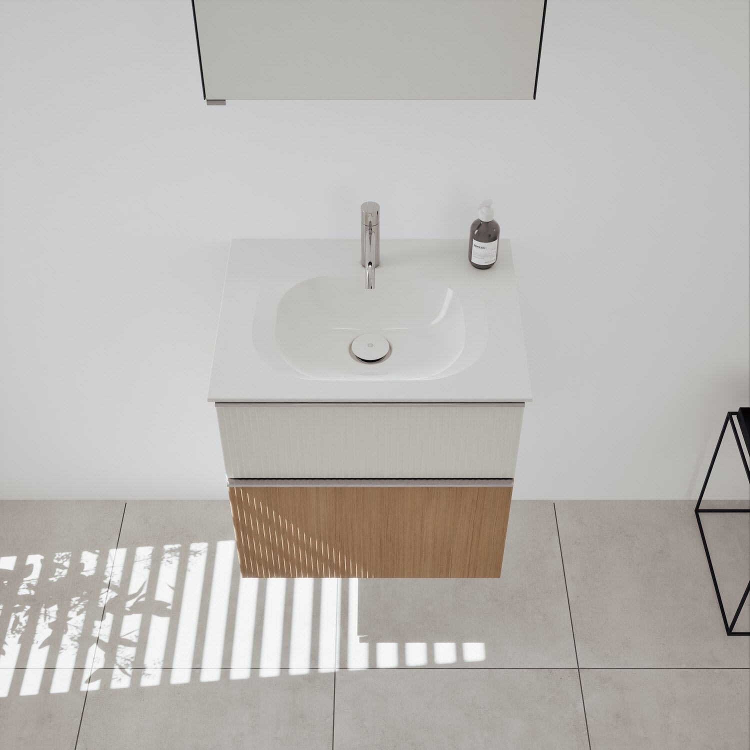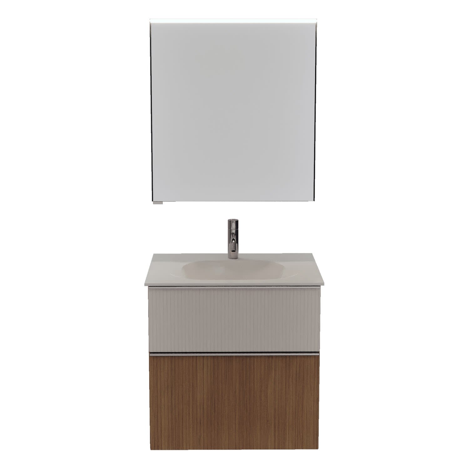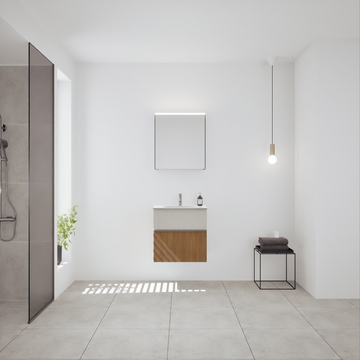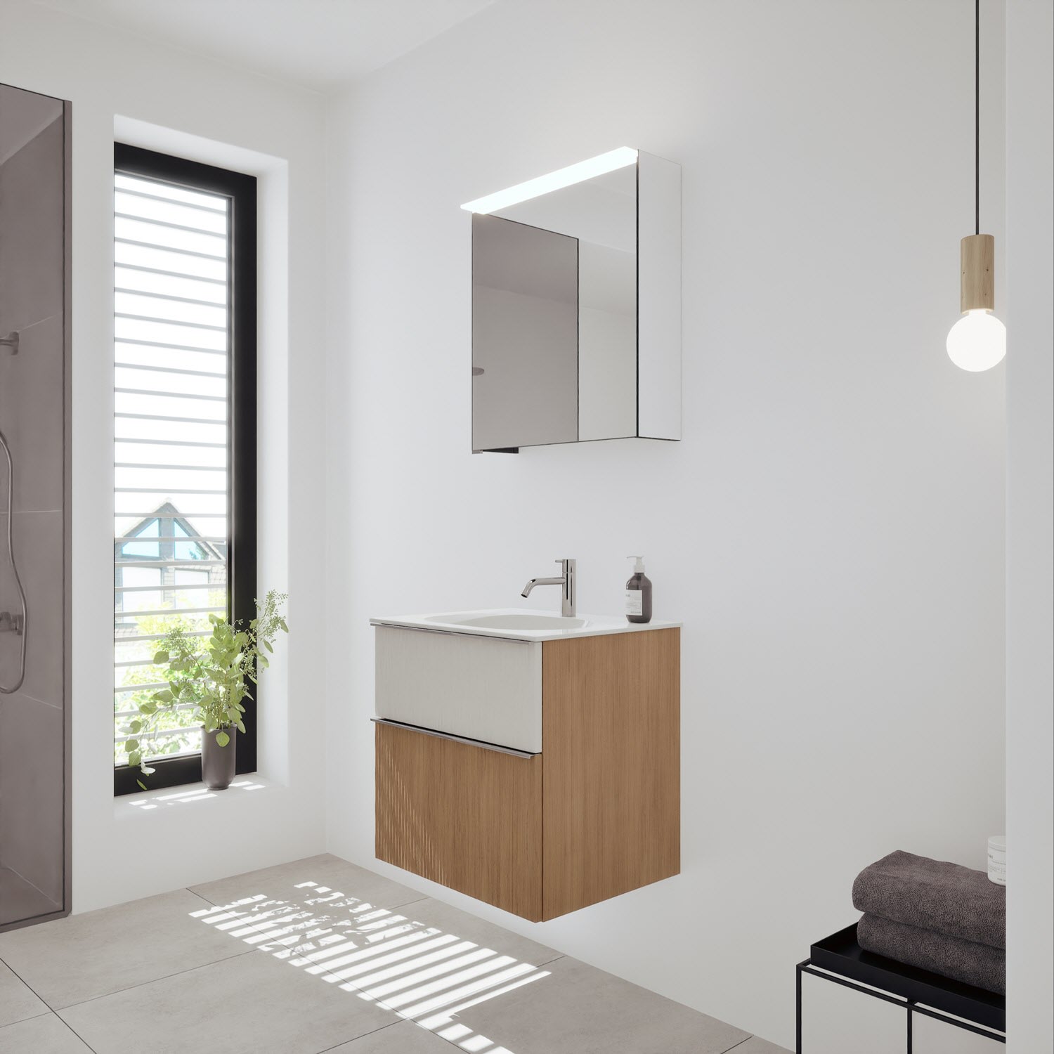 burgbad Fiumo 2.0 Badmöbelset 62 cm mit Waschtisch mit Unterschrank mit Griff G0146 und Spiegelschrank