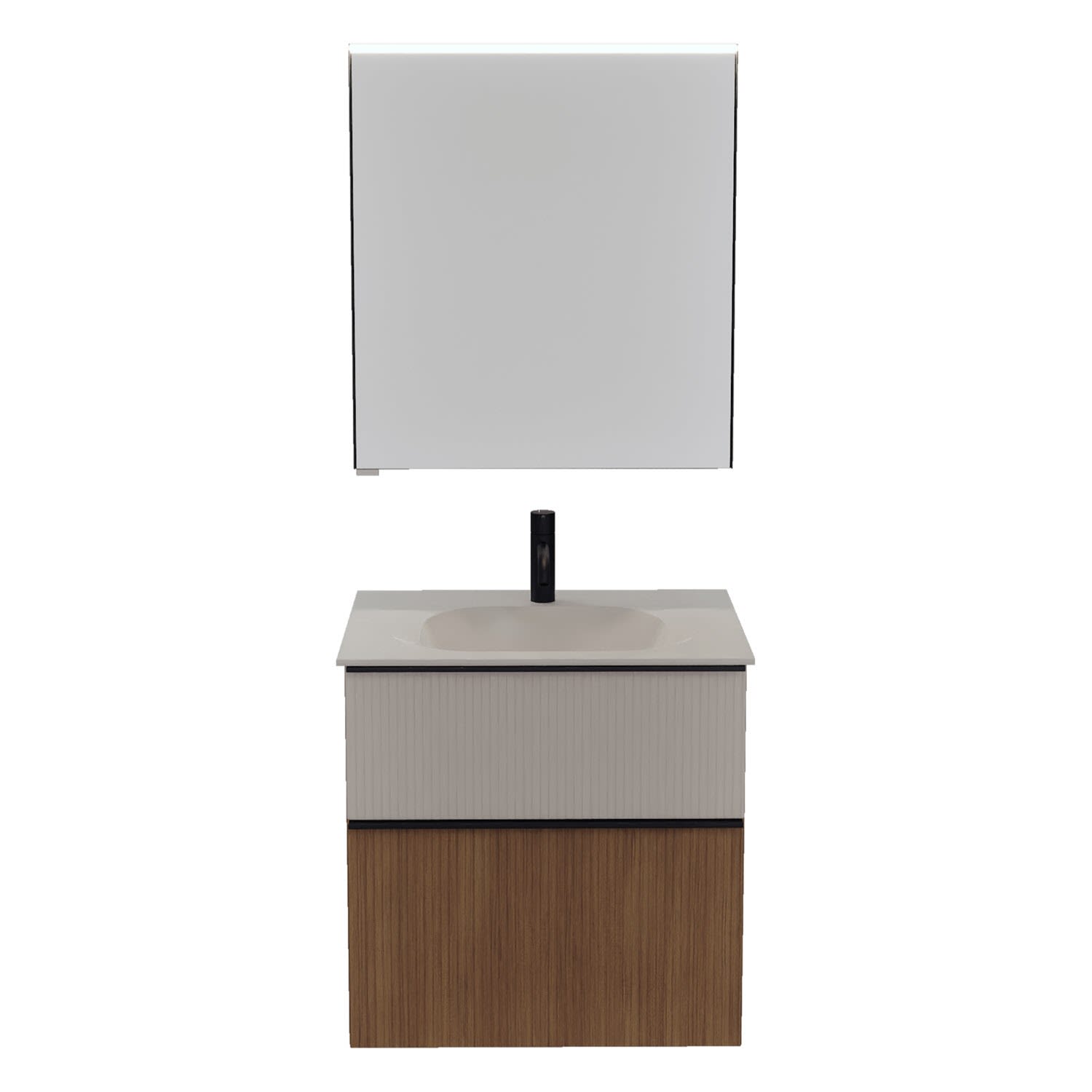 burgbad Fiumo 2.0 Badmöbelset 62 cm mit Waschtisch mit Unterschrank mit Griff G0200 und Spiegelschrank