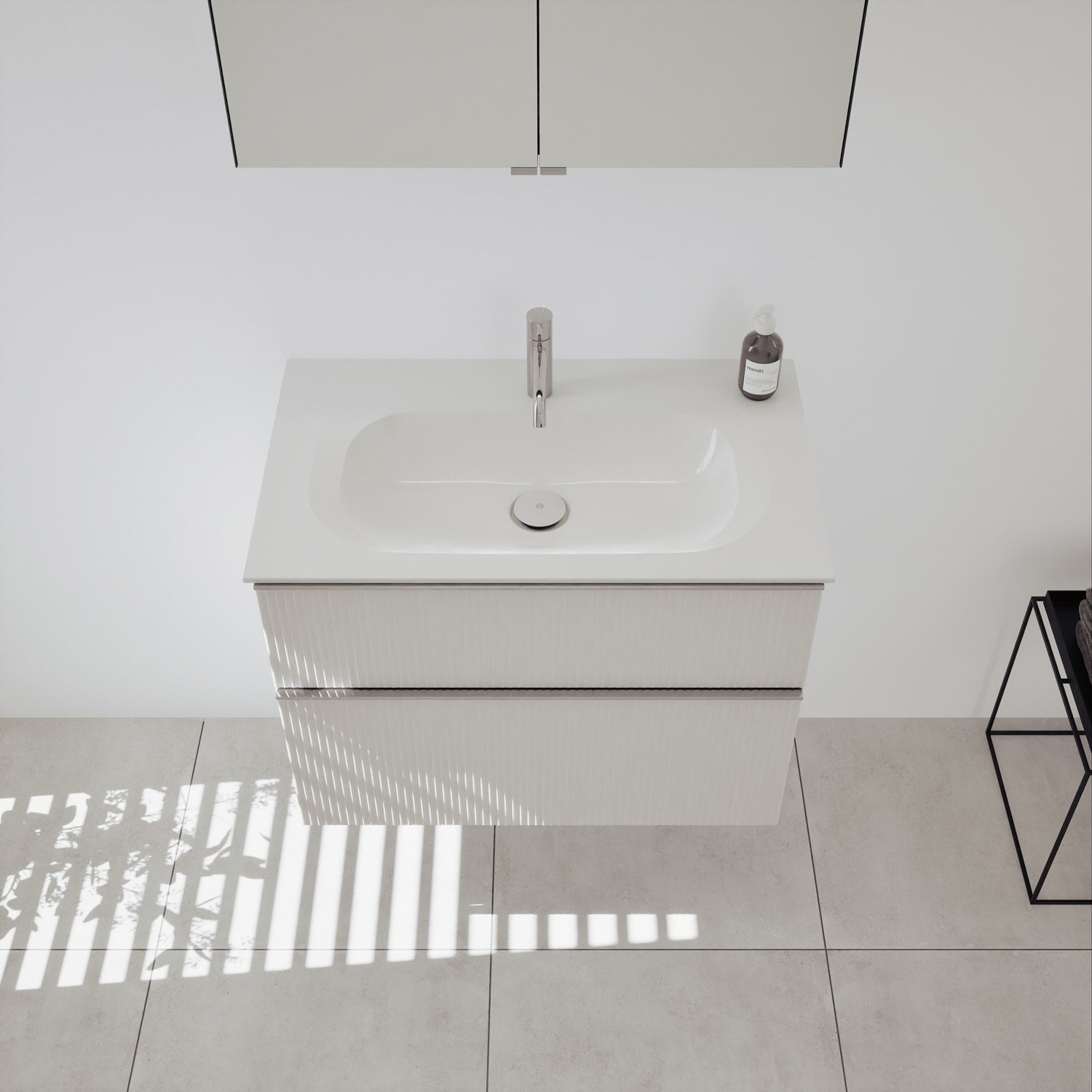burgbad Fiumo 2.0 Badmöbelset 82 cm mit Waschtisch mit Unterschrank mit Griff G0146 und Spiegelschrank
