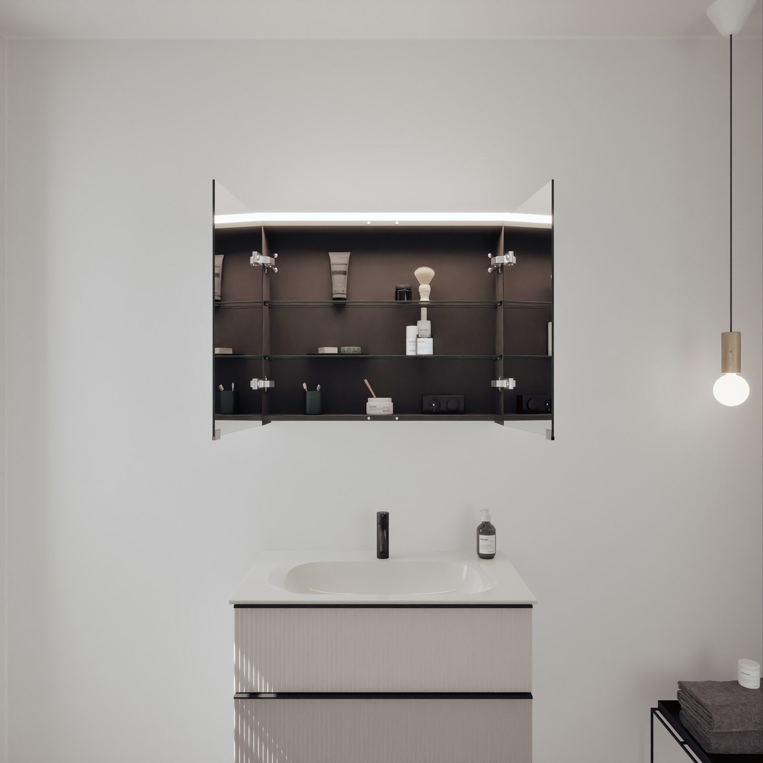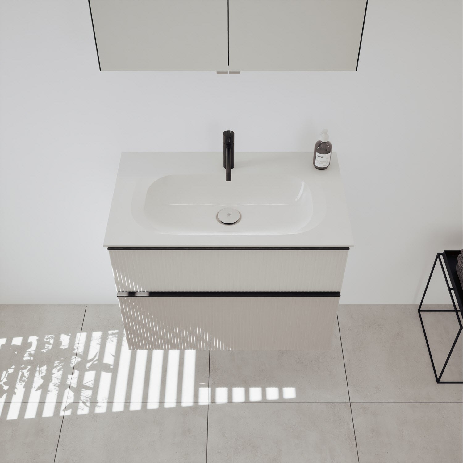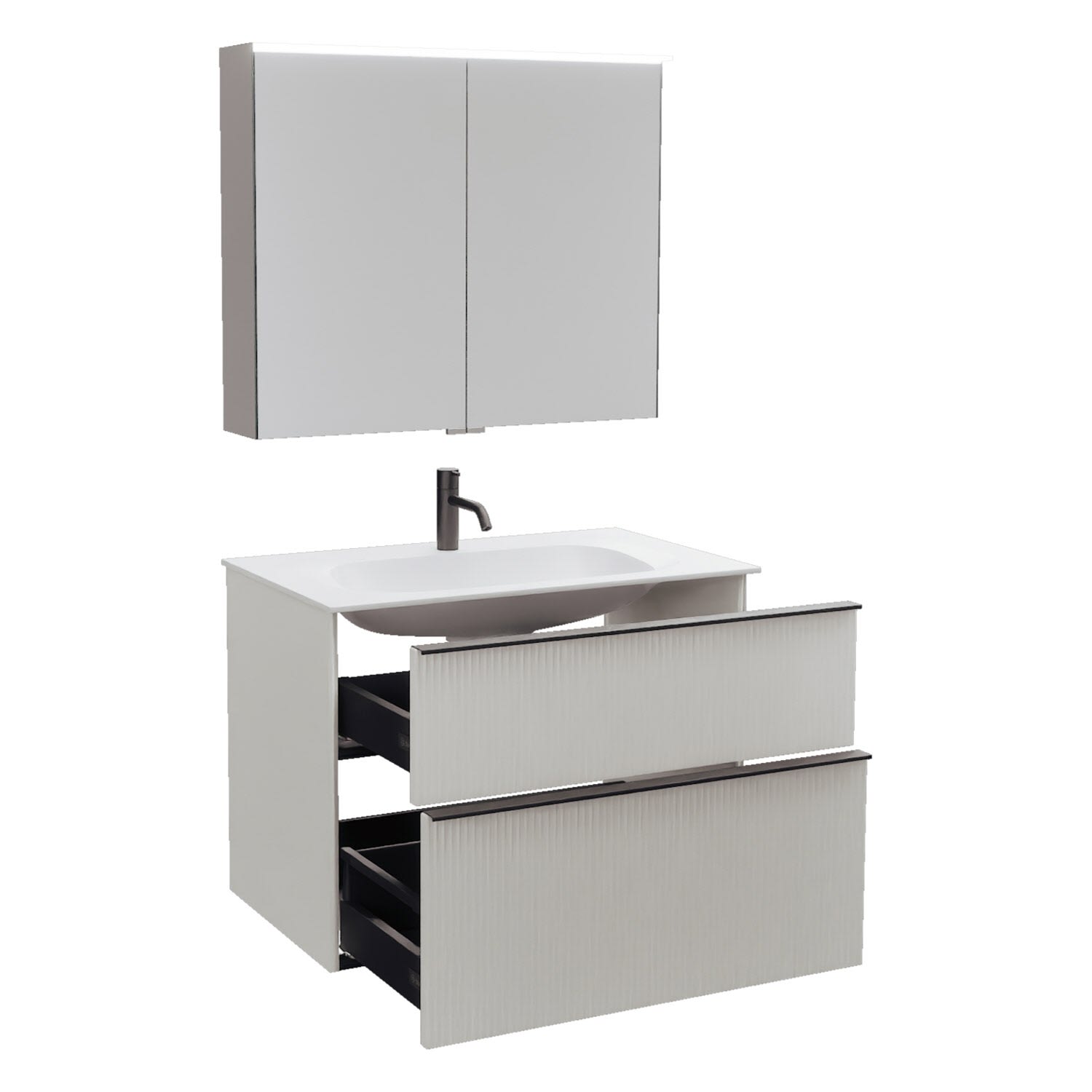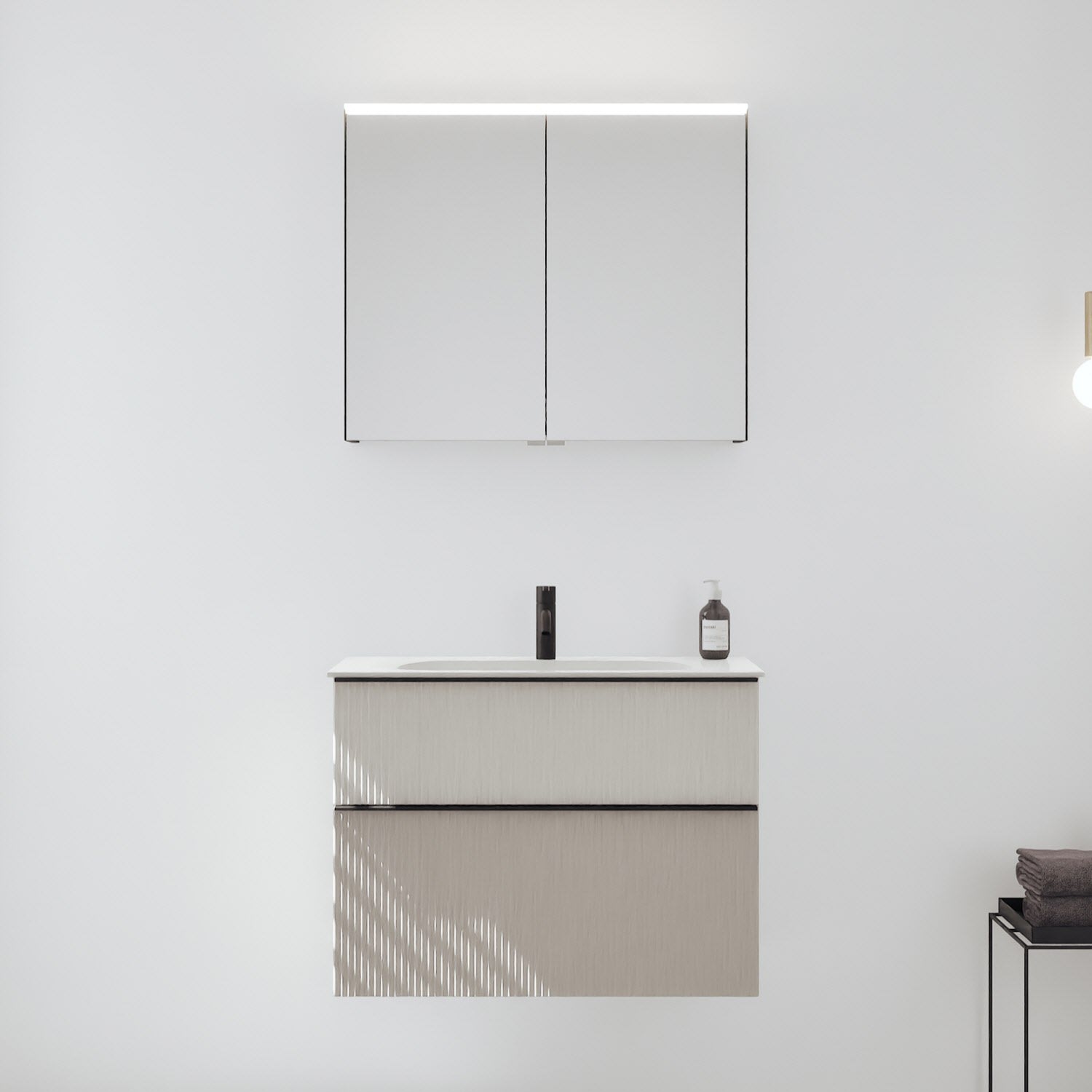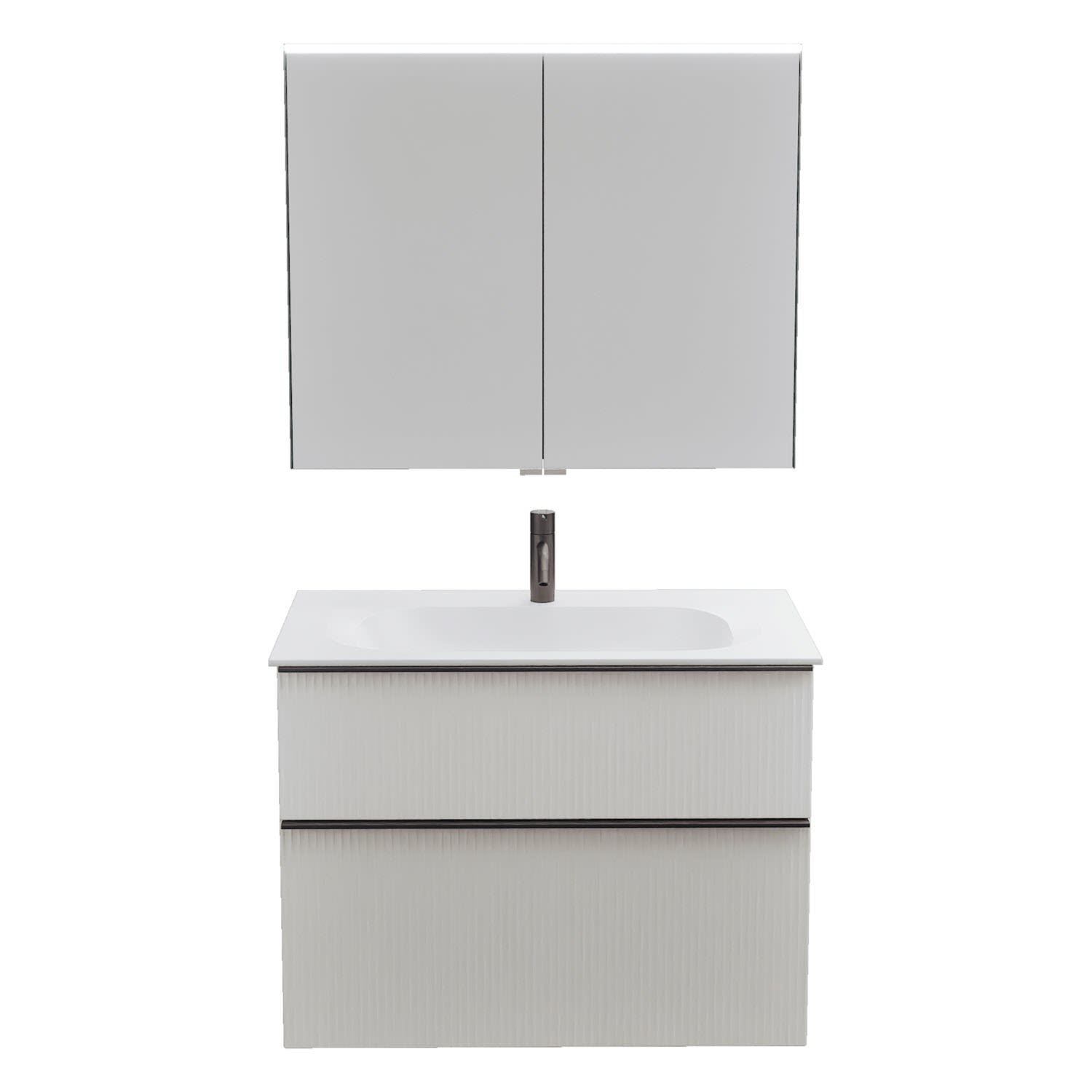 burgbad Fiumo 2.0 Badmöbelset 82 cm mit Waschtisch mit Unterschrank mit Griff G0200 und Spiegelschrank
