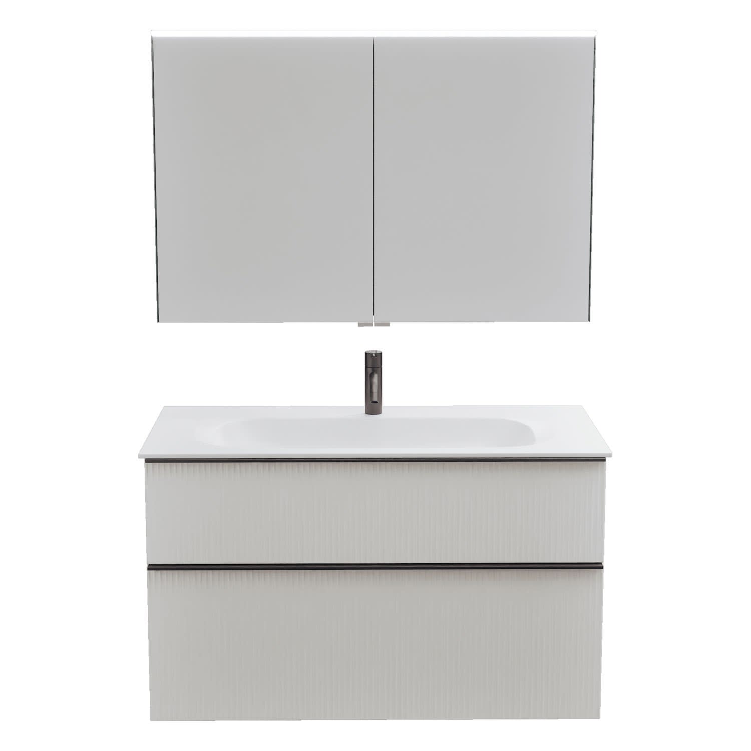 burgbad Fiumo 2.0 Badmöbelset 102 cm mit Waschtisch mit Unterschrank mit Griff G0200 und Spiegelschrank