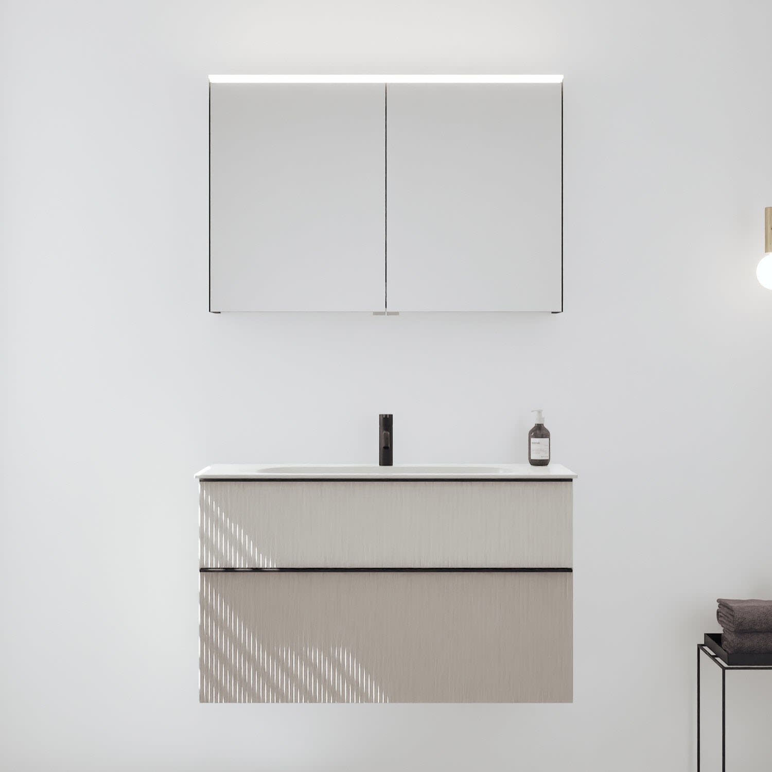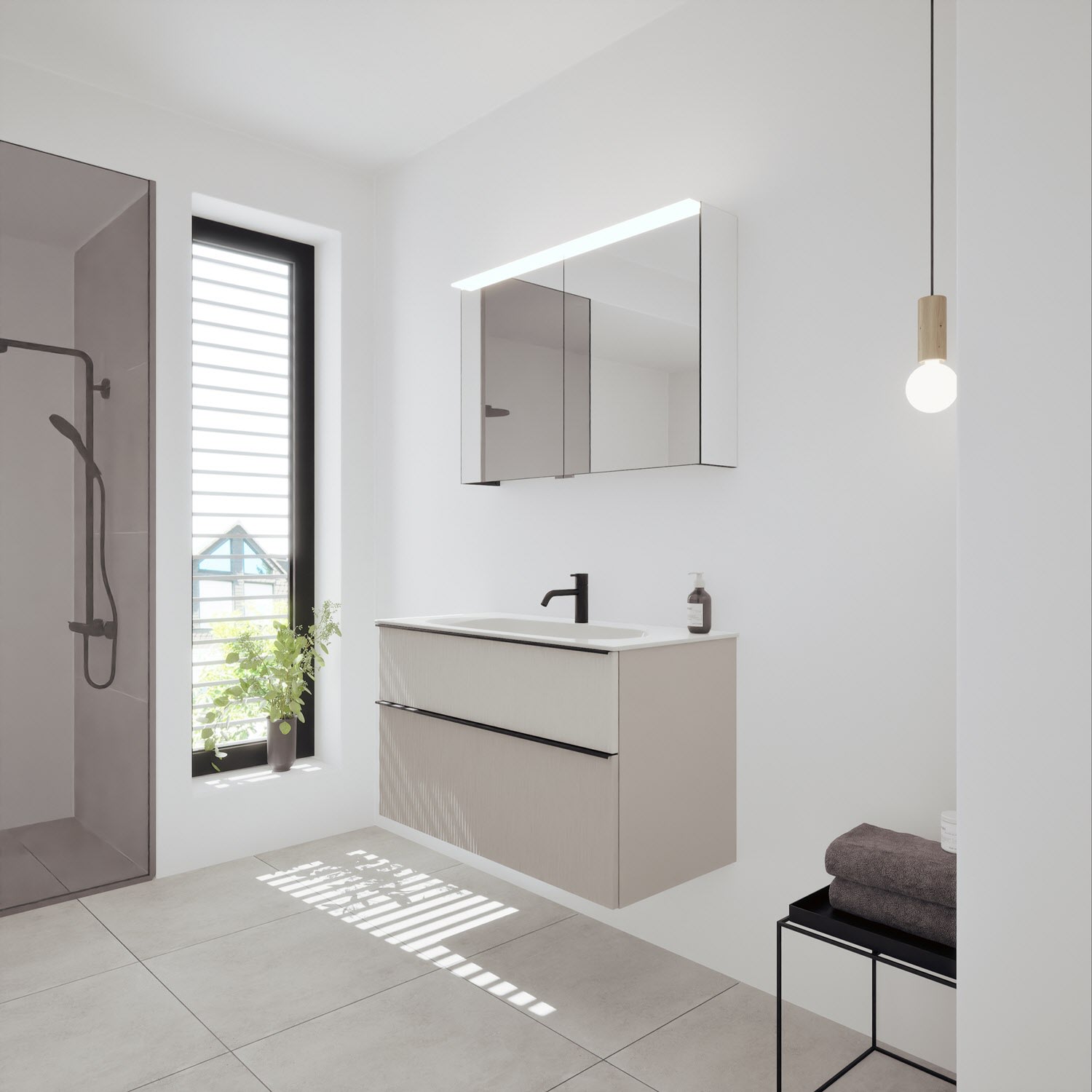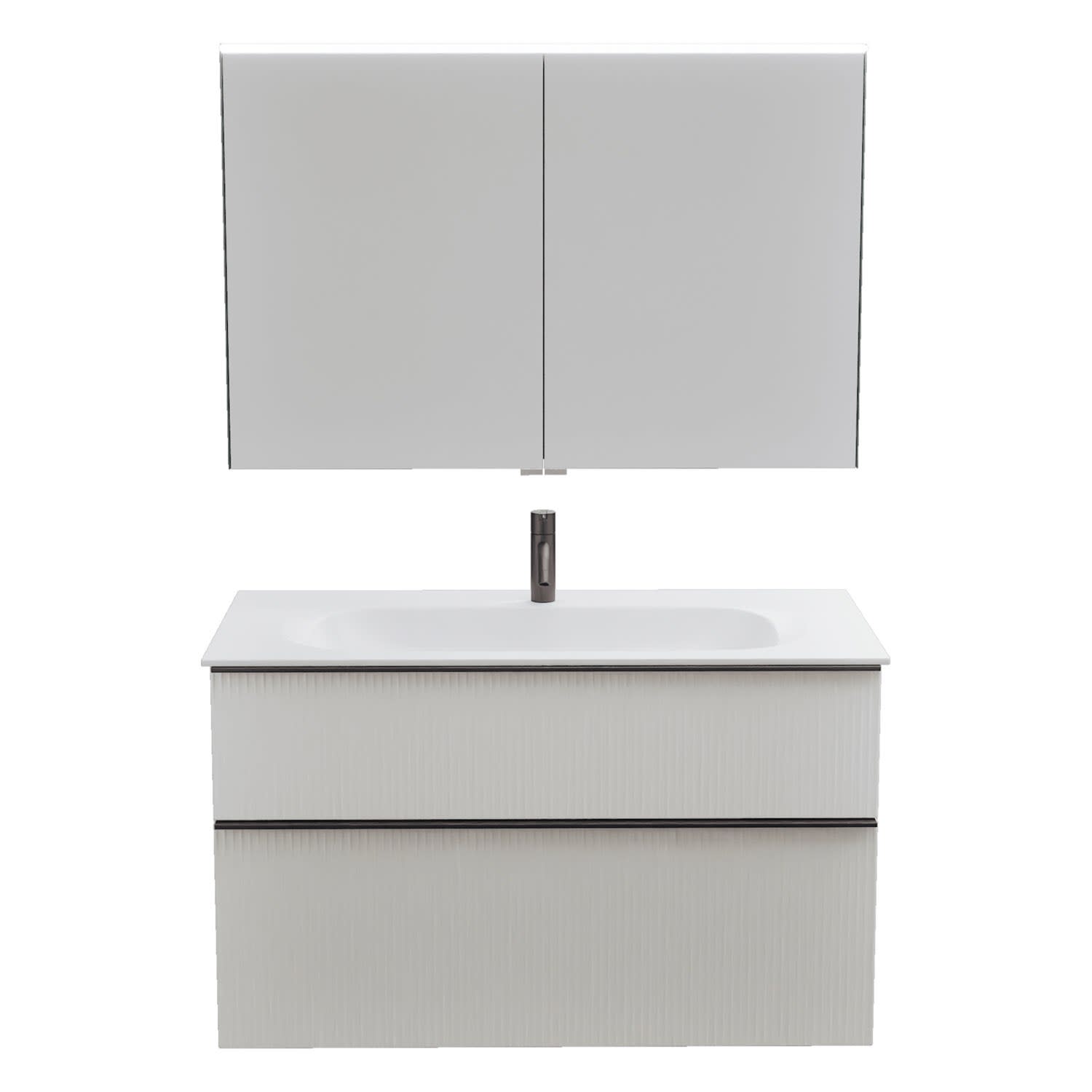 burgbad Fiumo 2.0 Badmöbelset 102 cm mit Waschtisch mit Unterschrank mit Griff G0200 und Spiegelschrank