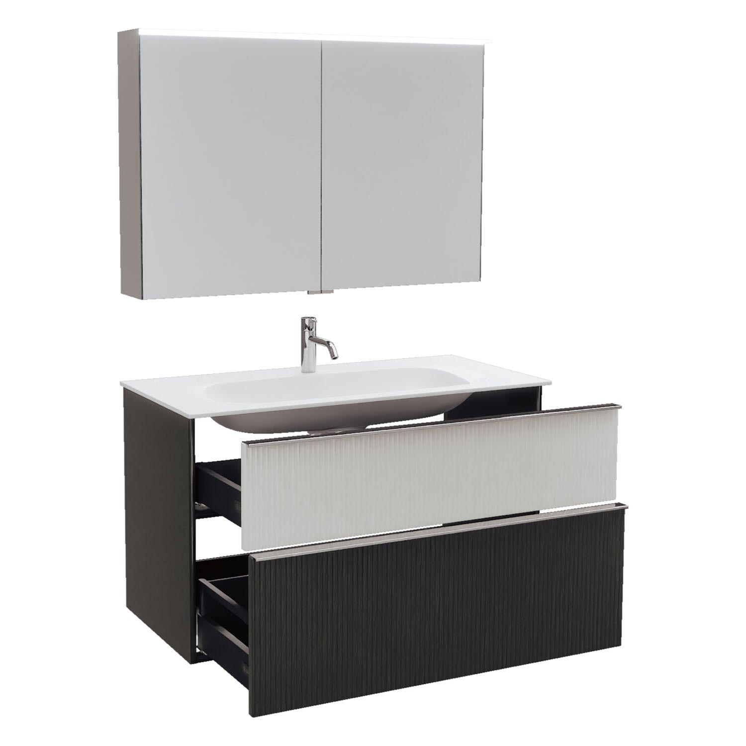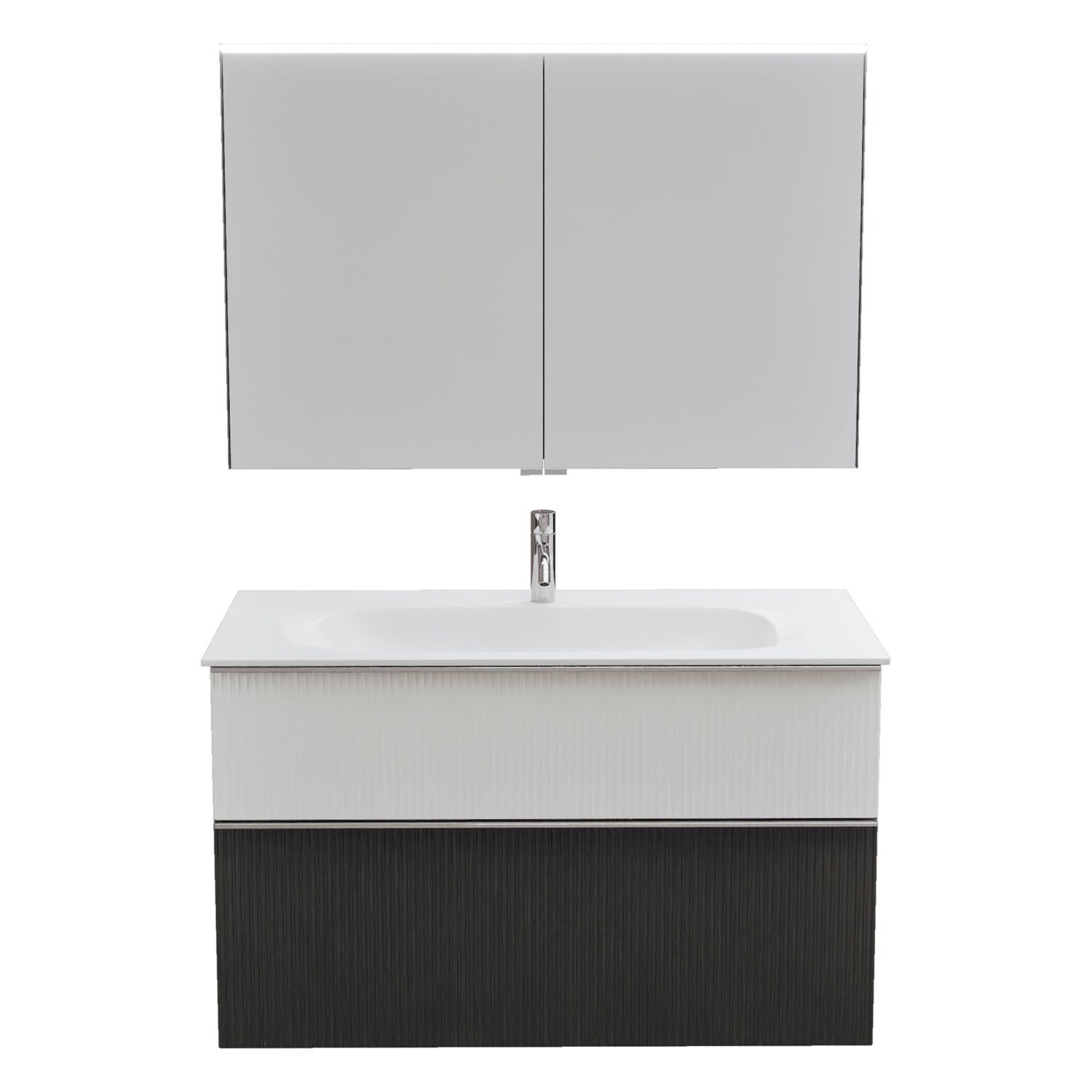 burgbad Fiumo 2.0 Badmöbelset 102 cm mit Waschtisch mit Unterschrank mit Griff G0146 und Spiegelschrank