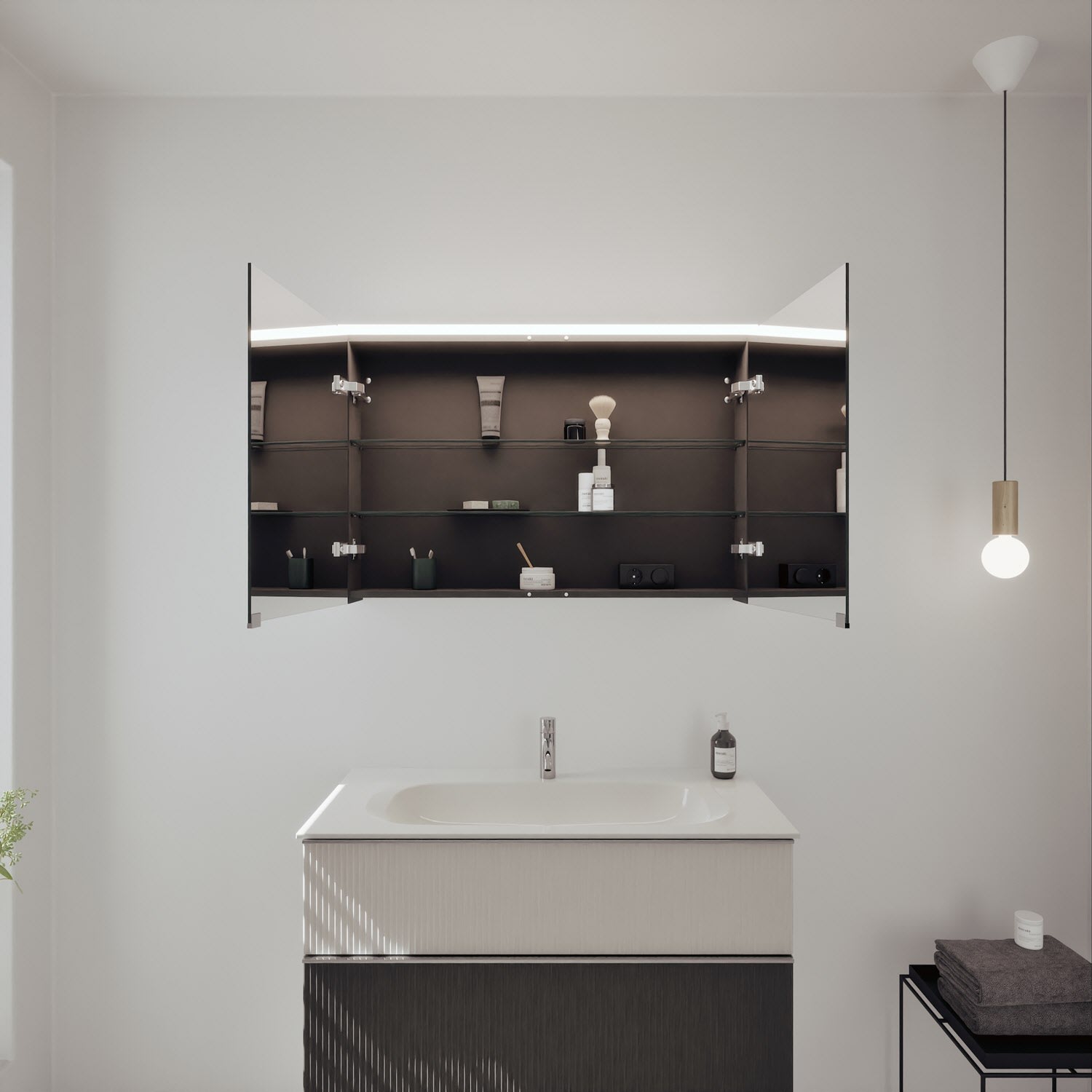 - Spiegelschrank, Waschtischunterschrank, Waschtisch,burgbad cleanFlow, Befestigung außer Stockschrauben